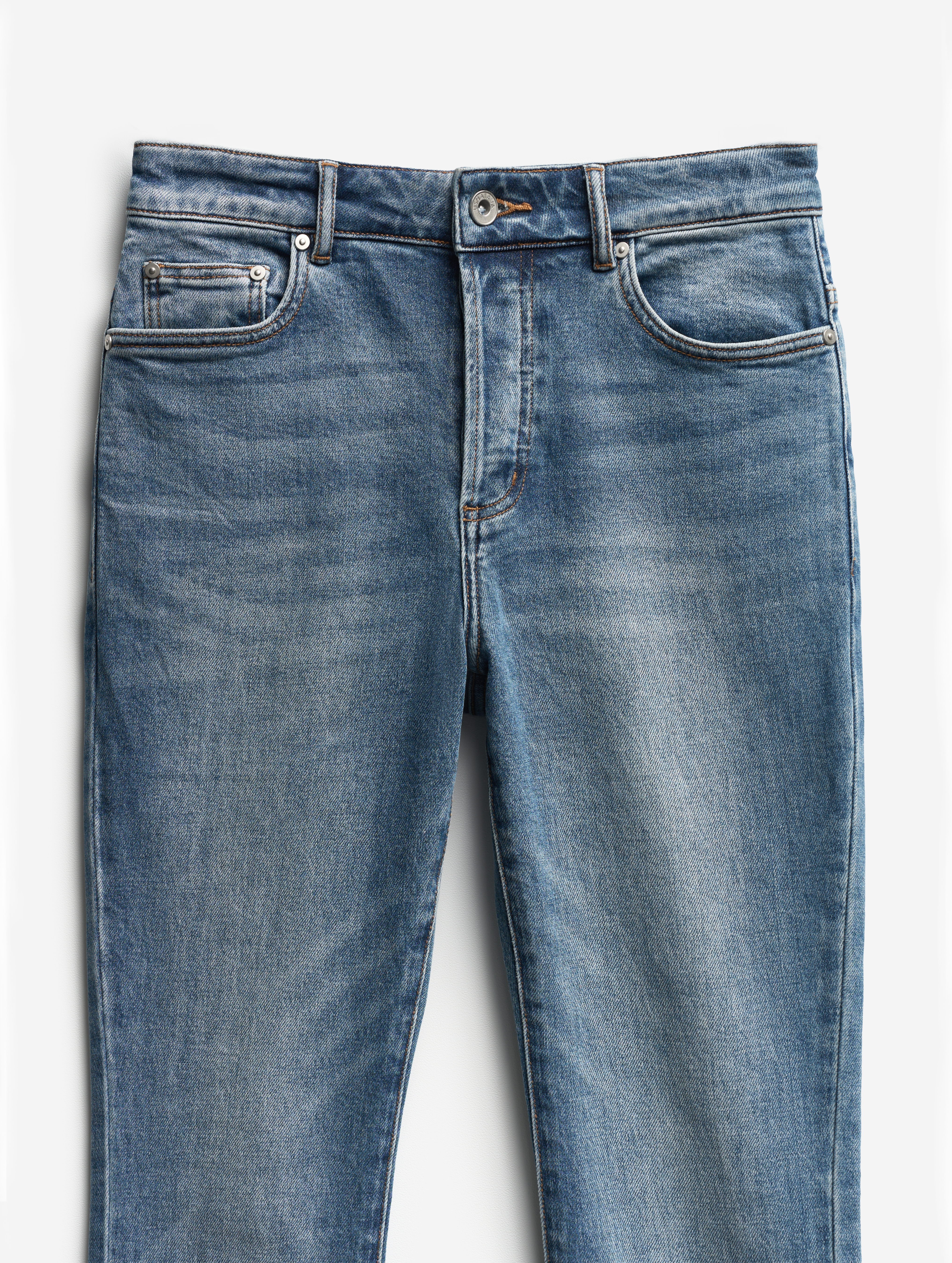 Бестселлер Ushatava. Для этой модели характерна высокая посадка и облегающий силуэт: джинсы плотно обтягивают бедра и расходятся от колена книзу. Изделие застегивается на болты и металлическую пуговицу. Есть два кармана и один маленький для зажигалки спереди, а также два кармана сзади. Присутствуют шлевки для ремня.