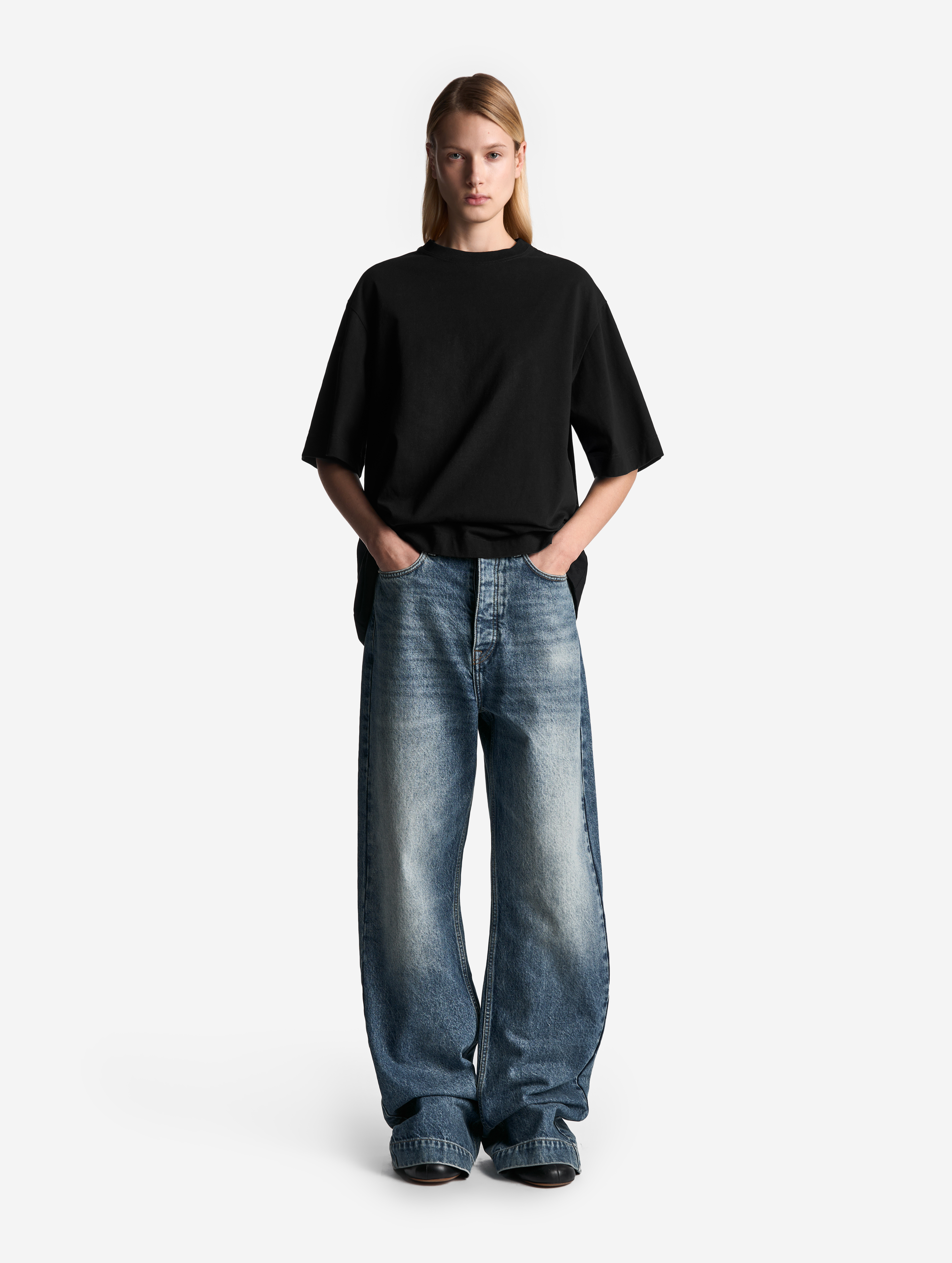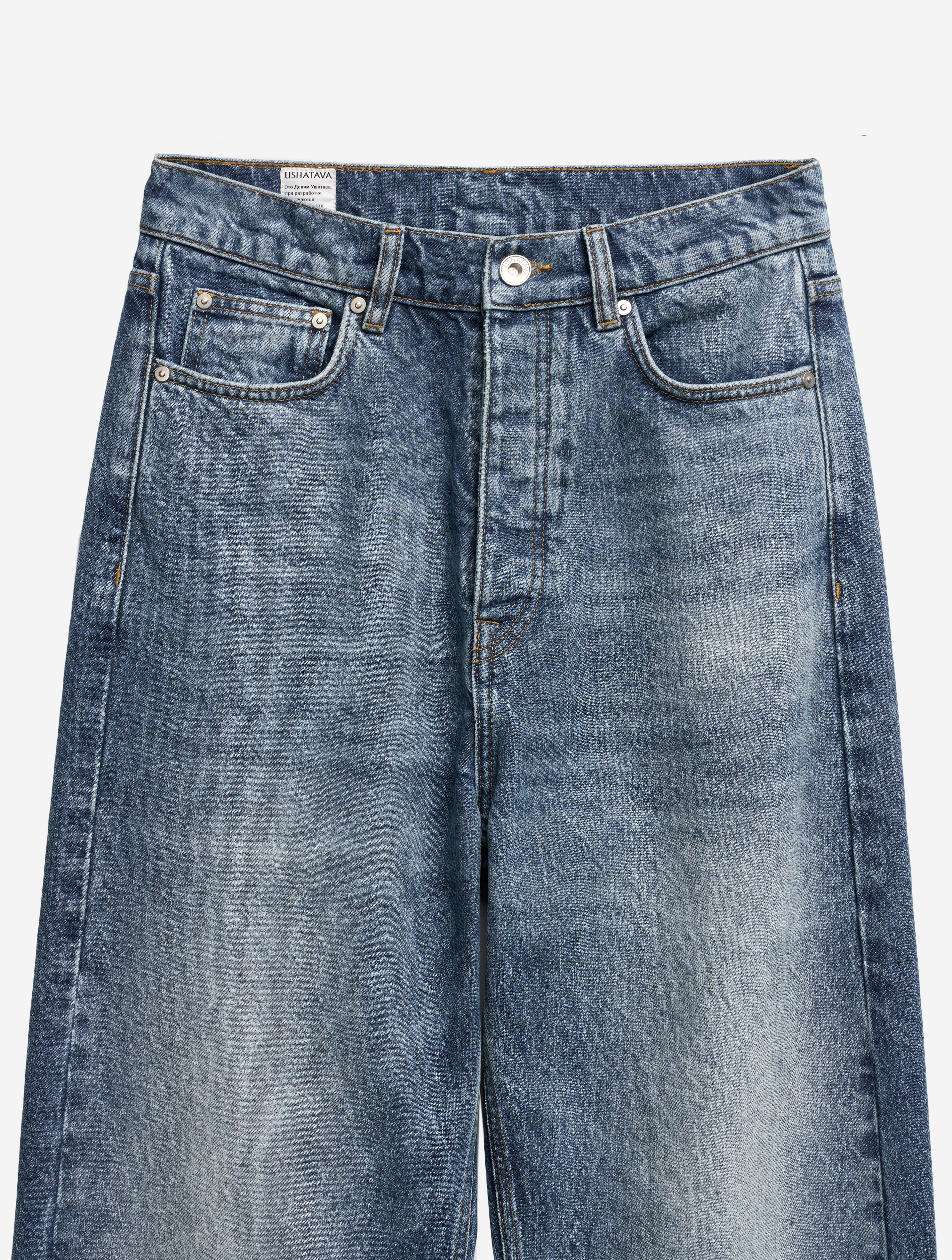 На первый взгляд это классические прямые джинсы с высокой талией, но они станут уникальными, как только попадут в ваш гардероб. Они начнут запоминать особенности тела: со временем на них появятся новые потертости и слегка изменится фактура ткани. Ushatava всегда вдохновляла идея «живой» одежды, которая интуитивно подстраивается под своего владельца. Так деним будет меняться вместе с вами и от этого становиться только лучше.
