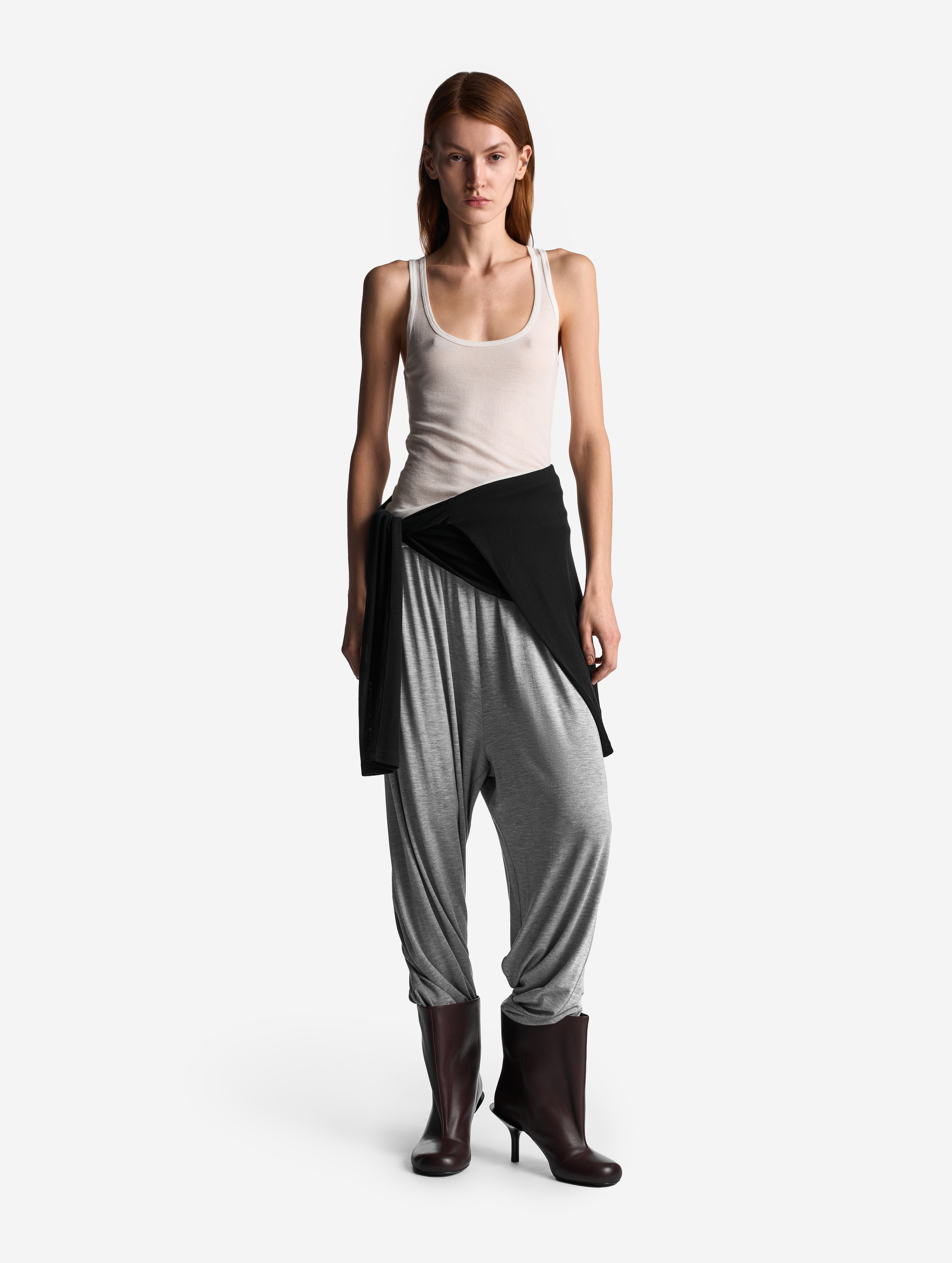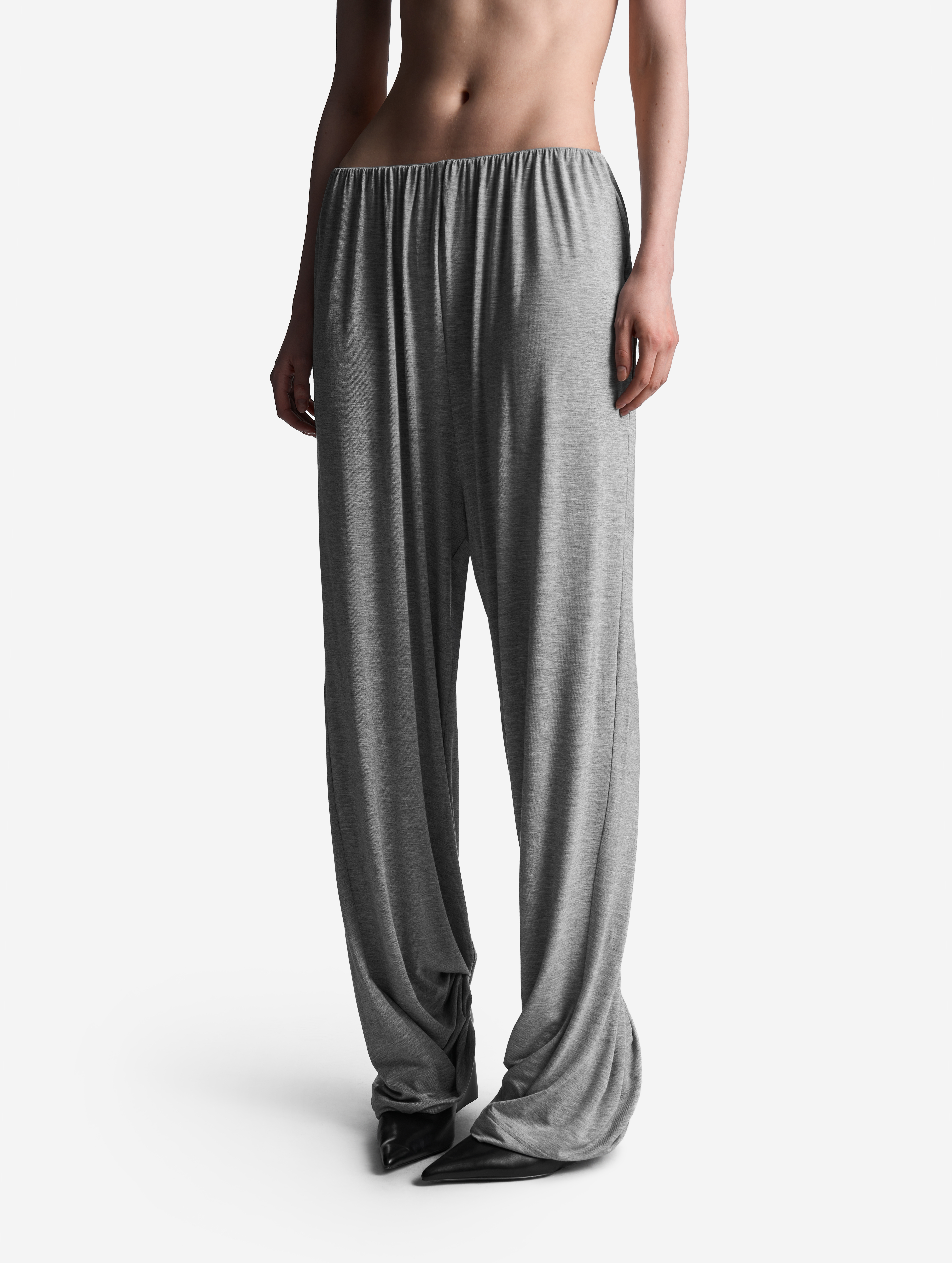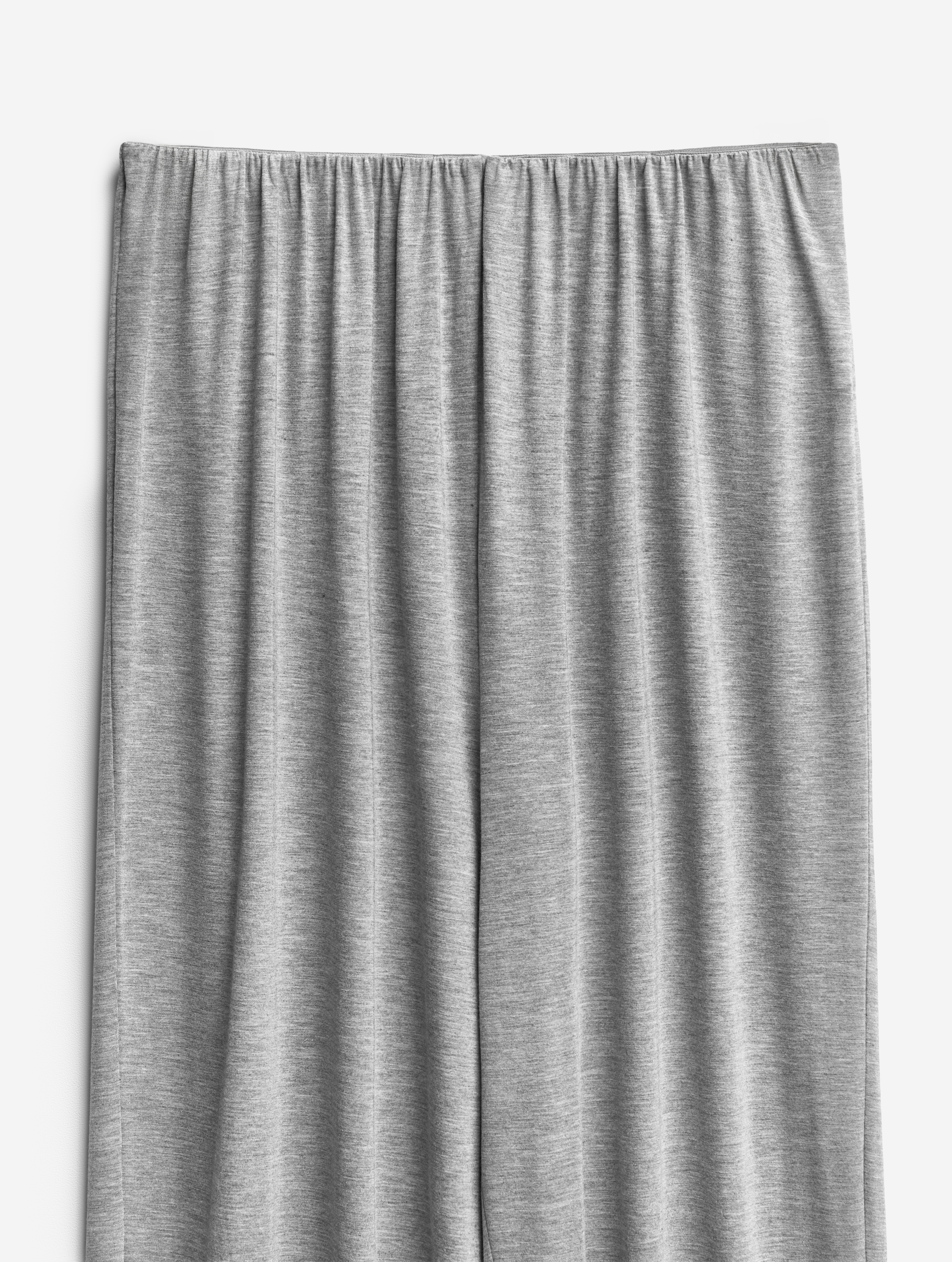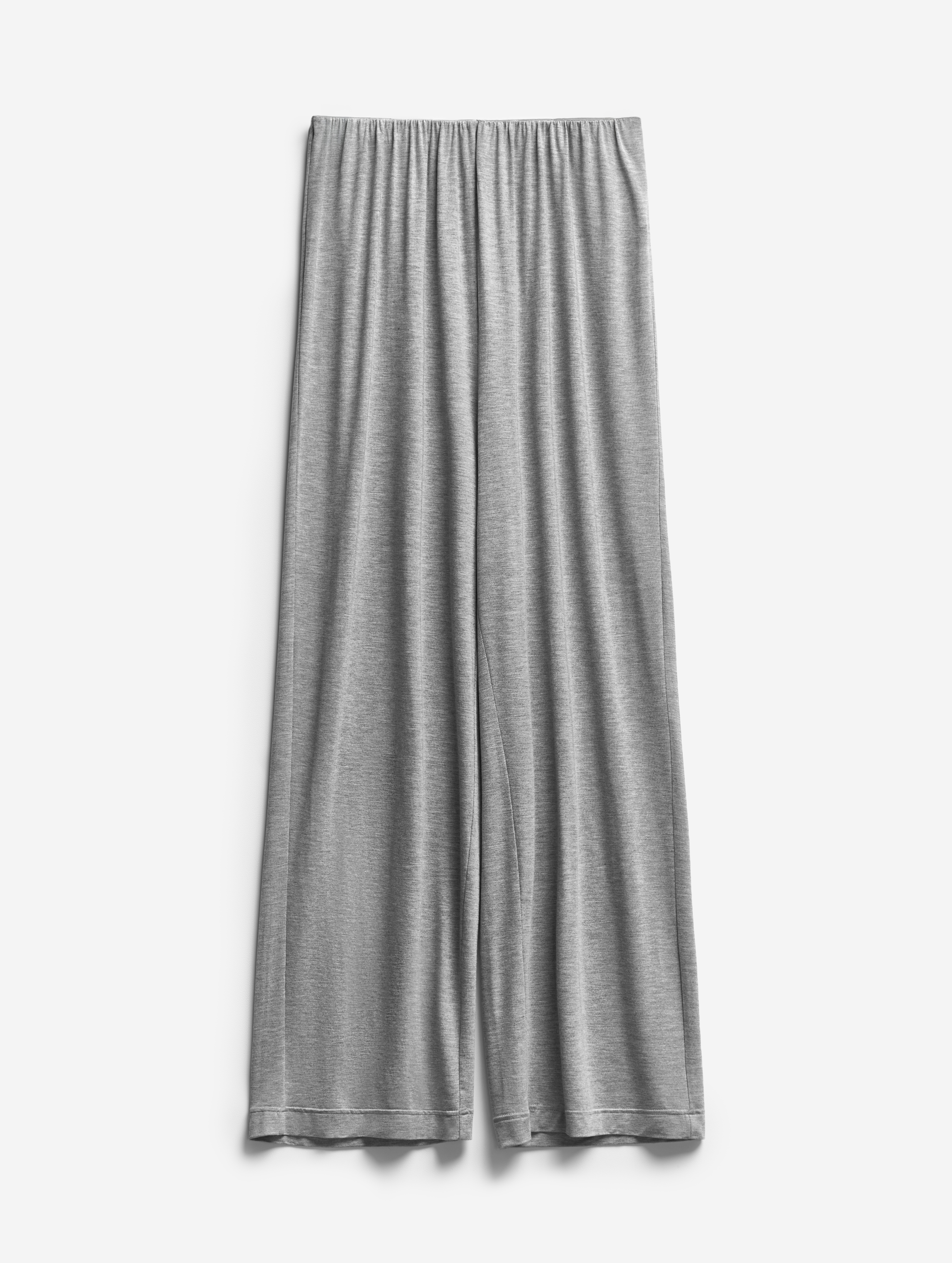 Прямые широкие брюки — классический силуэт модного Дома. У этих брюк свободная универсальная посадка: они рассчитаны как на женскую, так и на мужскую фигуру. Изделие выполнено из вискозного трикотажа: он мягкий, гладкий, приятен для тела, хорошо тянется и не мнется. Есть два глубоких кармана. Пояс на широкой эластичной резинке.