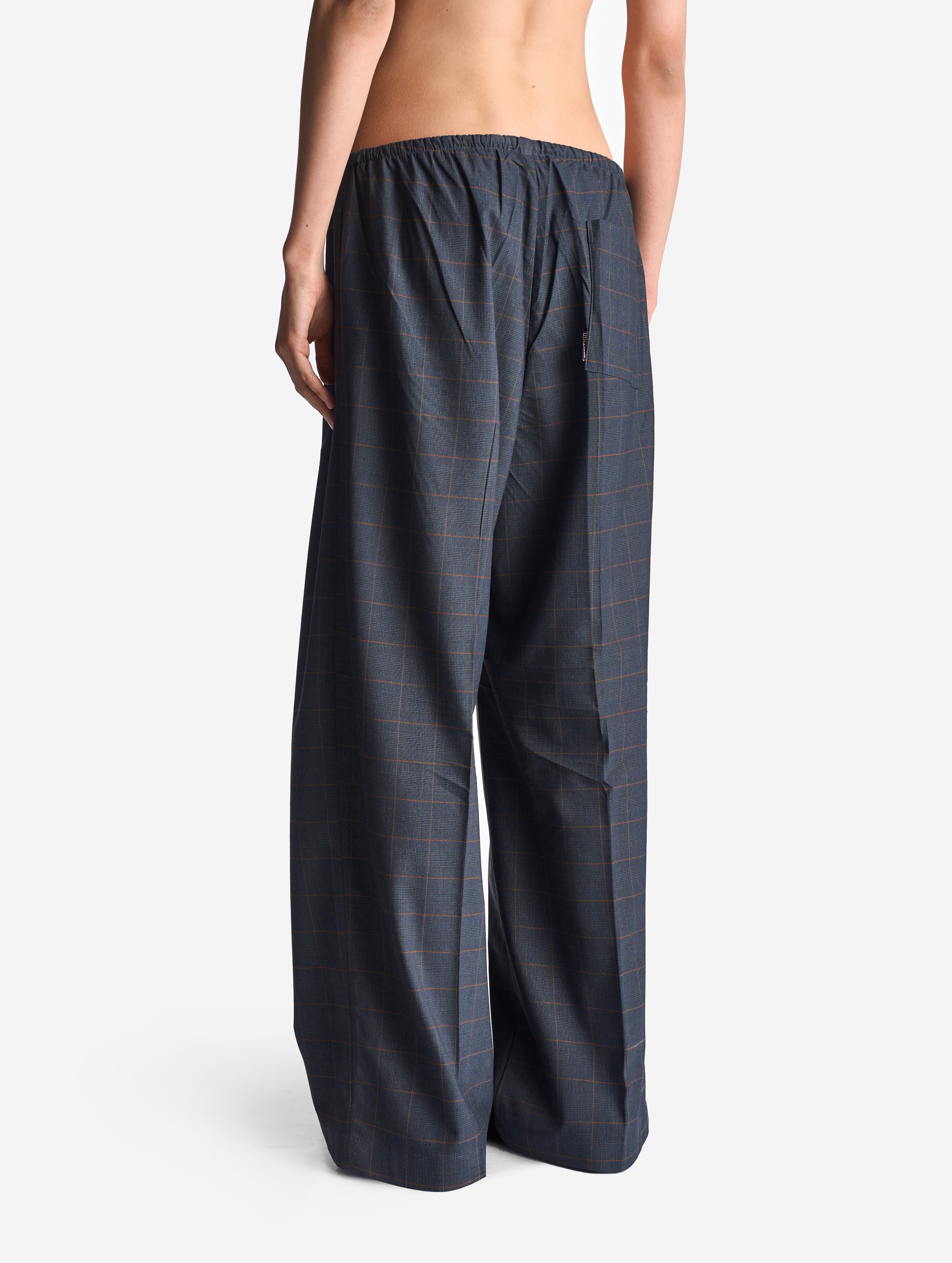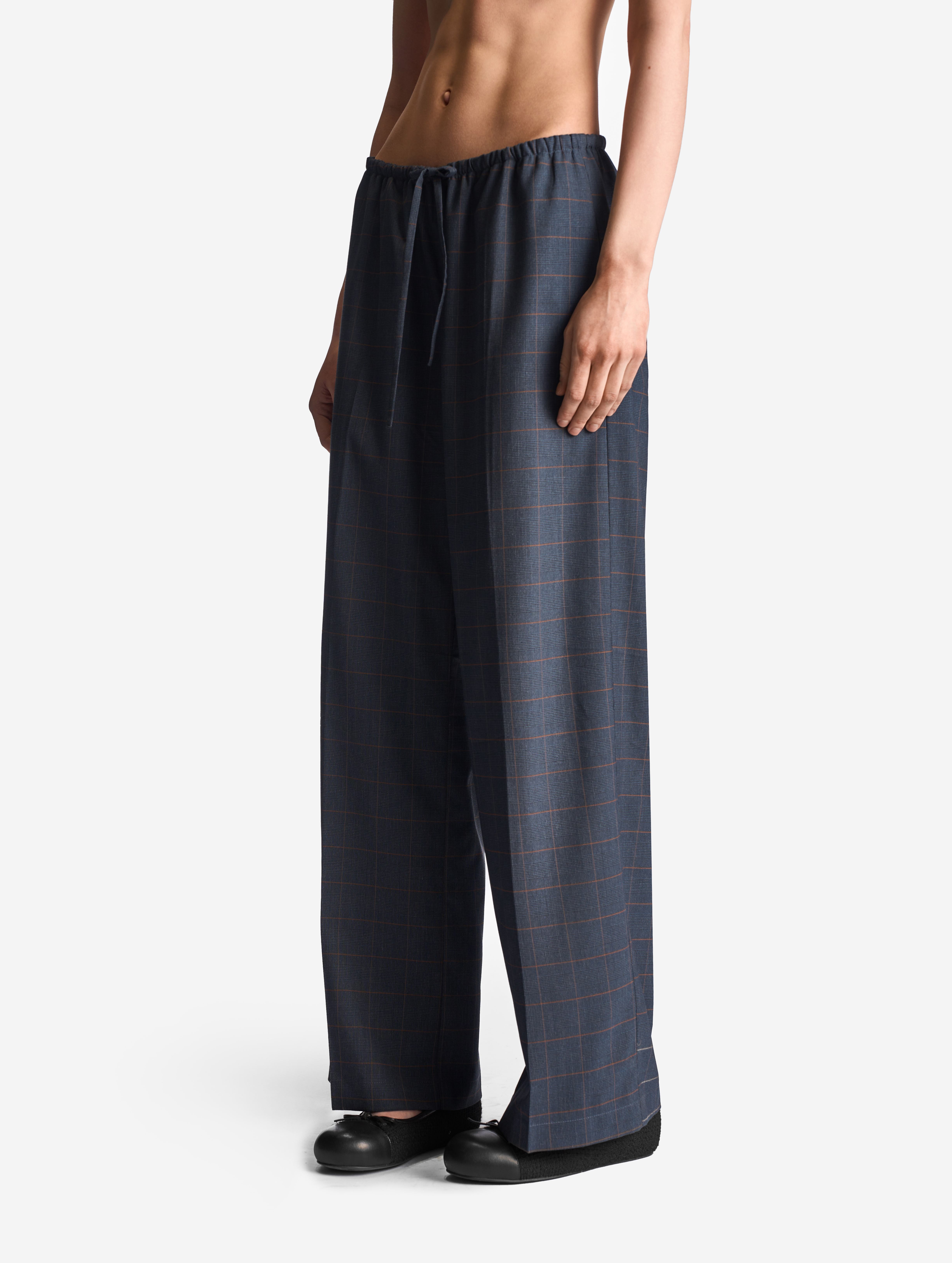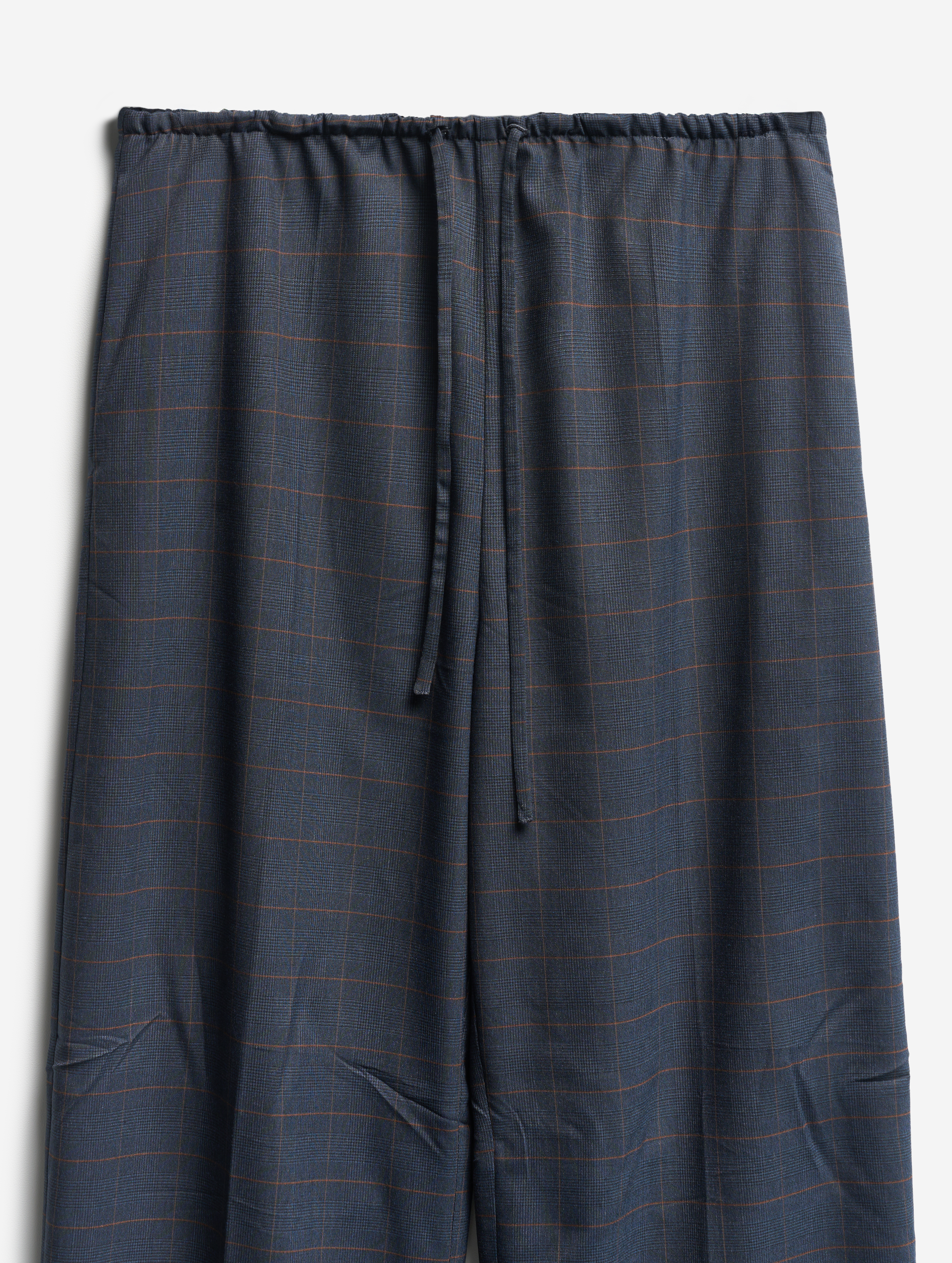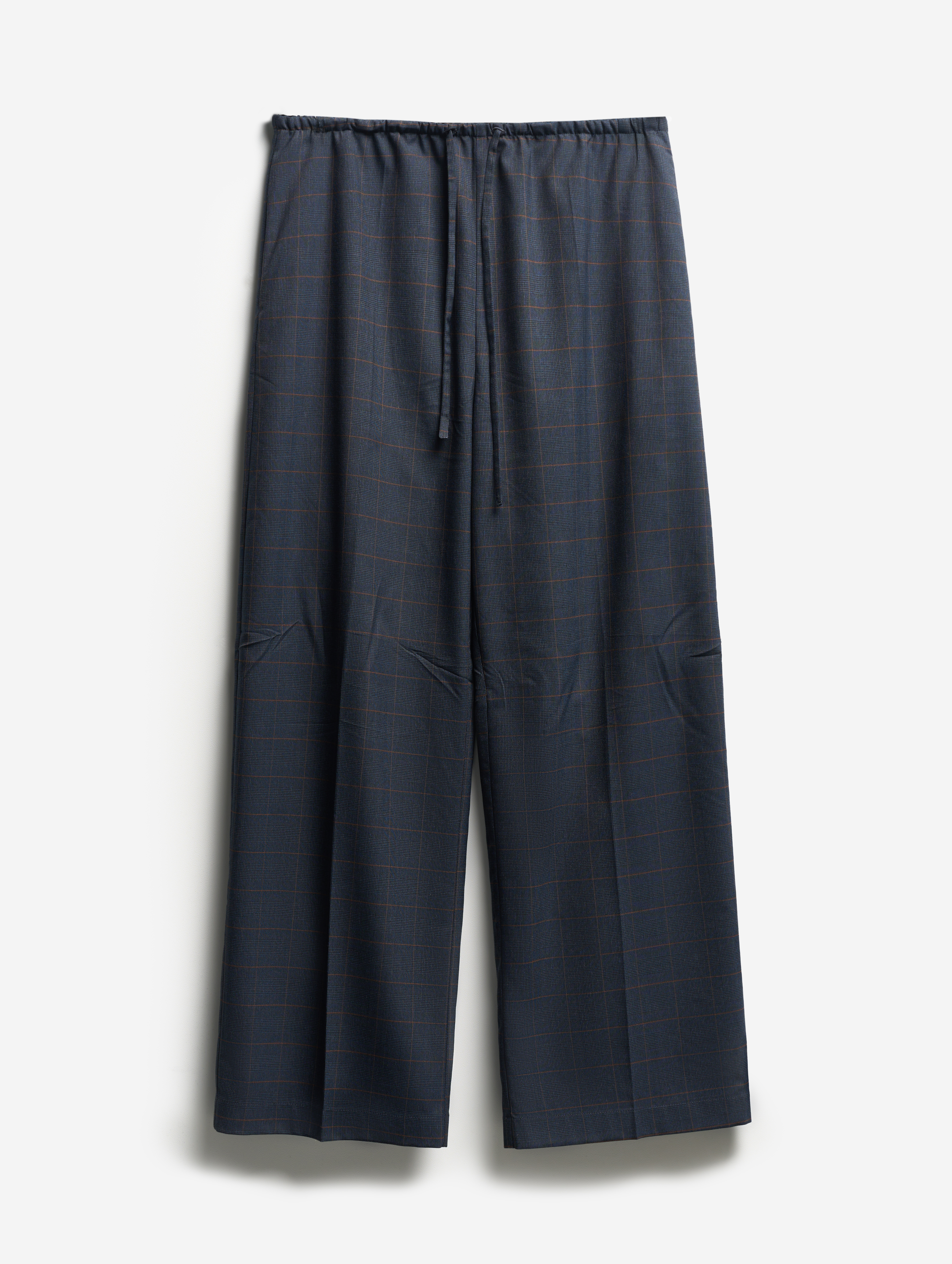 У модели свободная универсальная посадка на тонкой резинке, поэтому она будет хорошо сидеть как на женской, так и на мужской фигуре. Для дополнительной фиксации предусмотрен шнурок, протянутый с внешней стороны пояса. Готовое изделие прошло испытание горячим прессом: в самых подвижных местах — на бедрах и под коленями — присутствуют заломы, близкие к анатомическим. Нам хотелось создать эффект следов жизни, которые часто появляются на любимых вещах. У брюк есть два боковых кармана и один задний, украшенный флажком Ushatava.