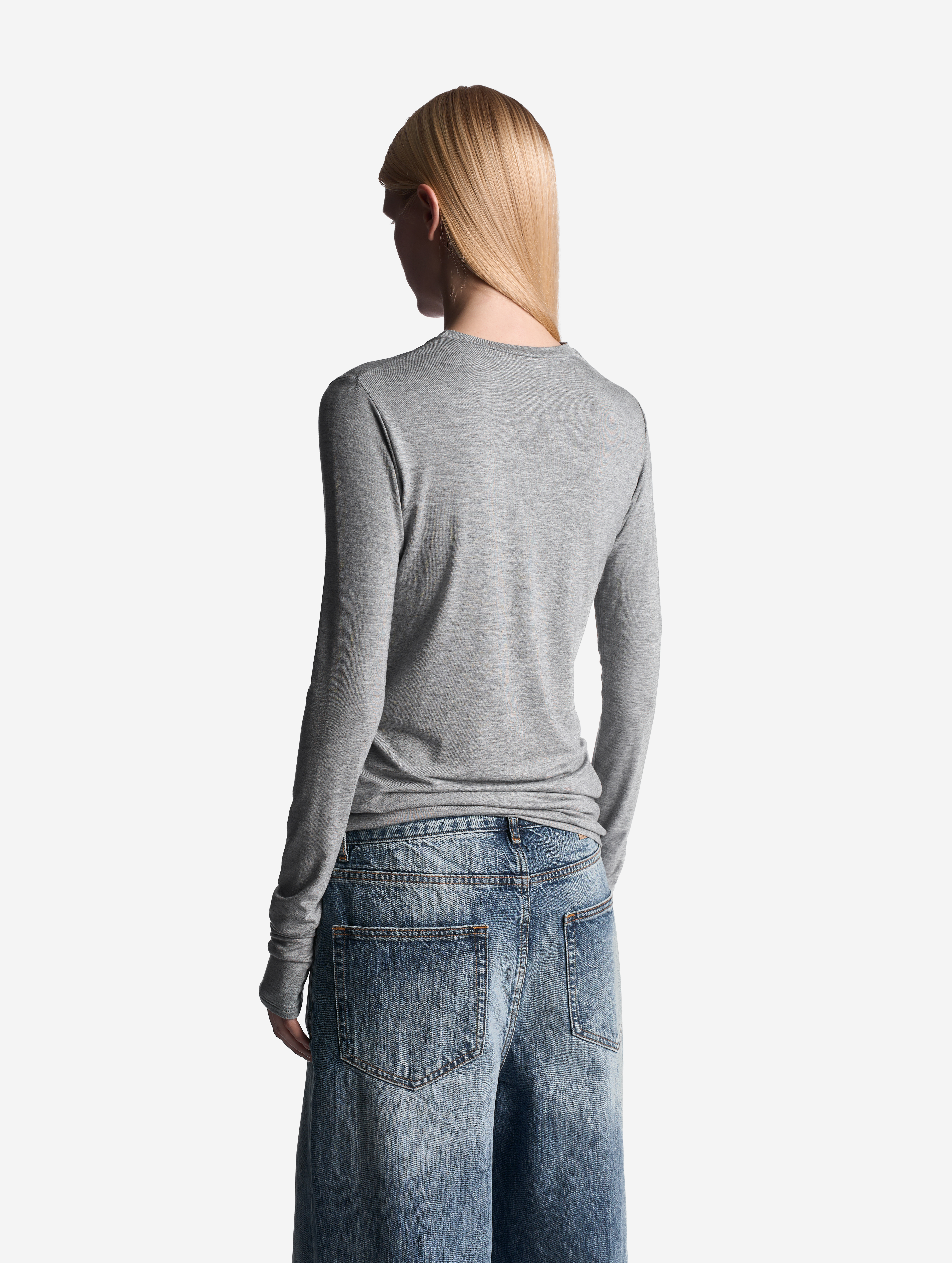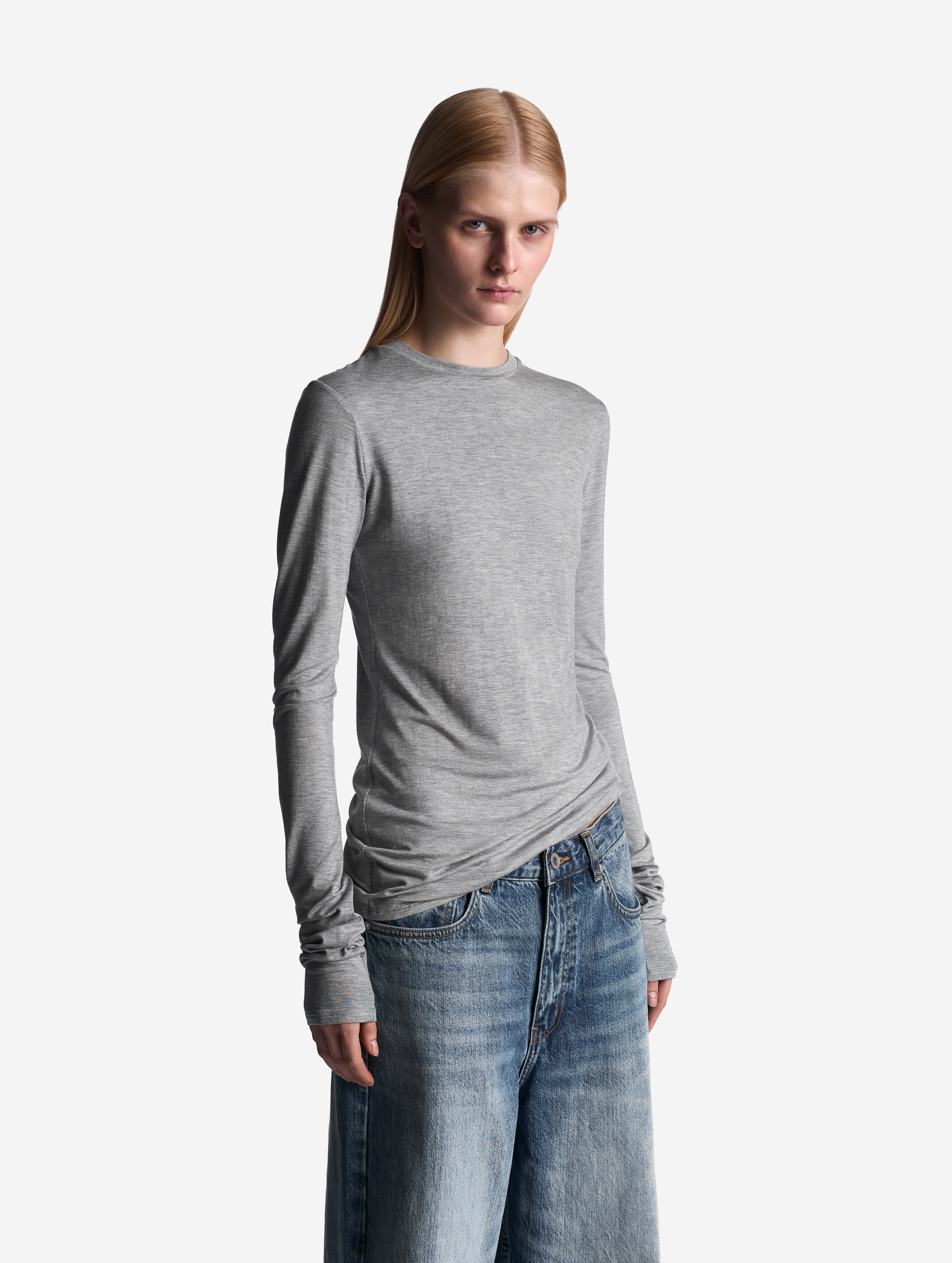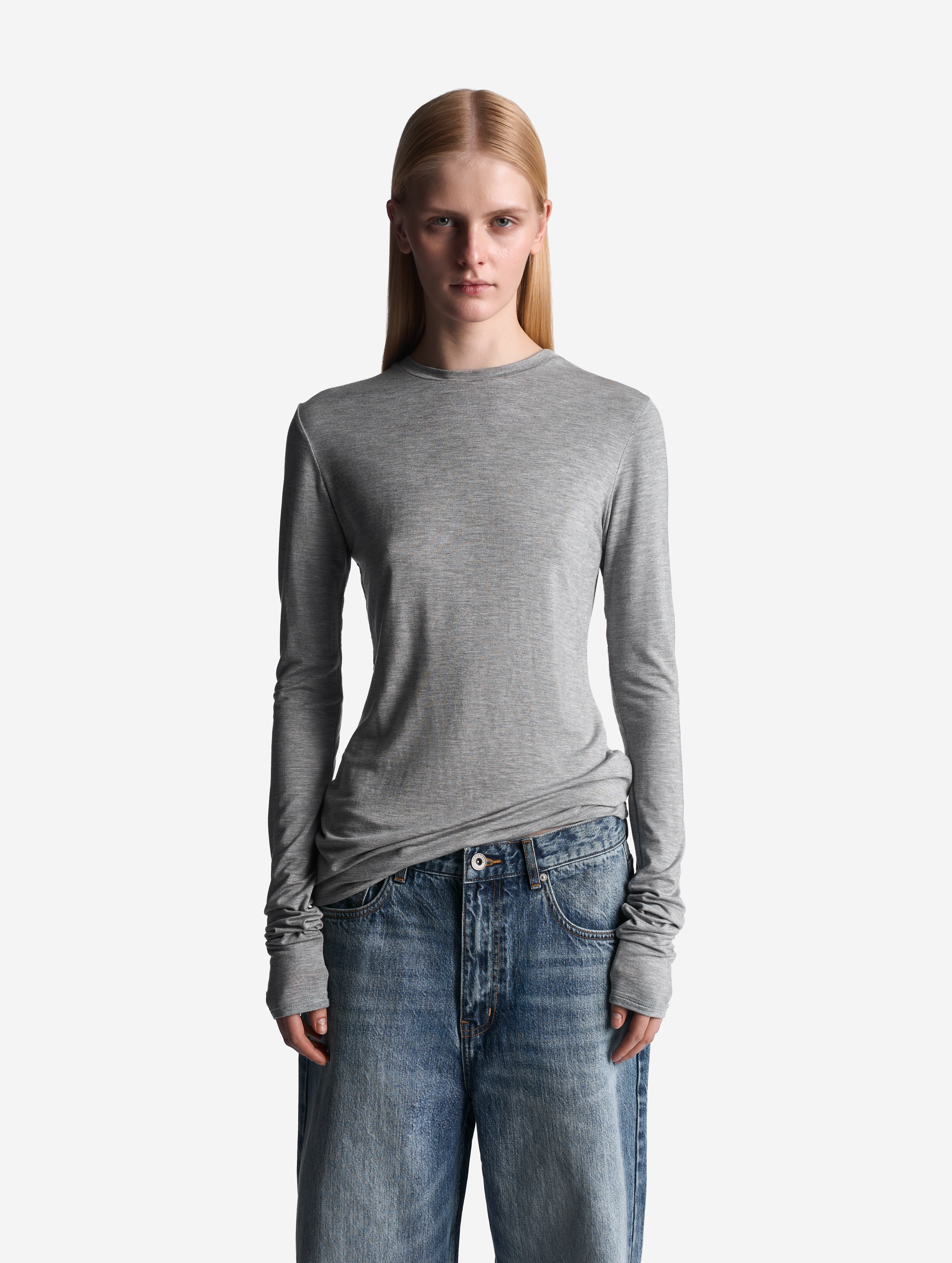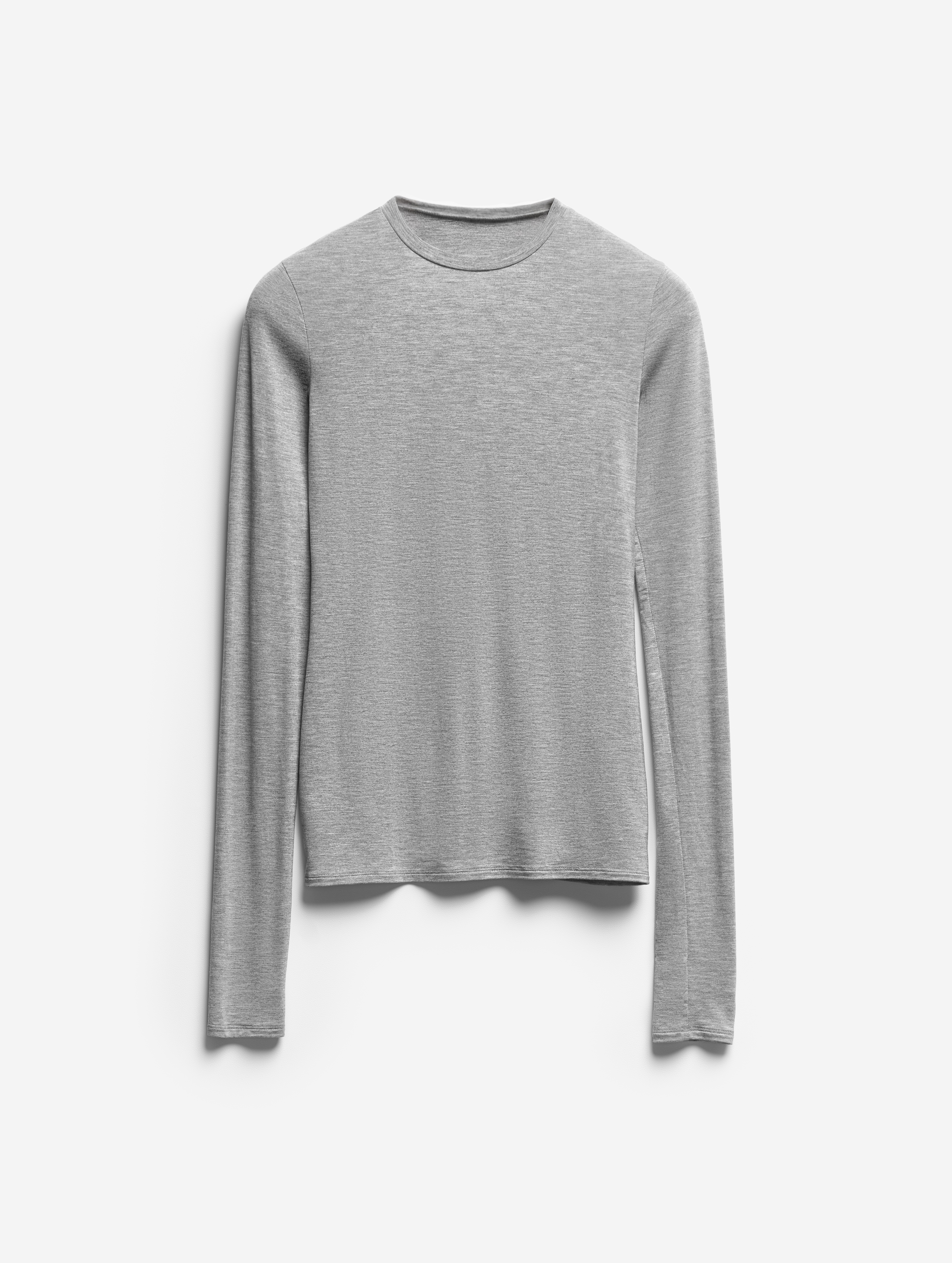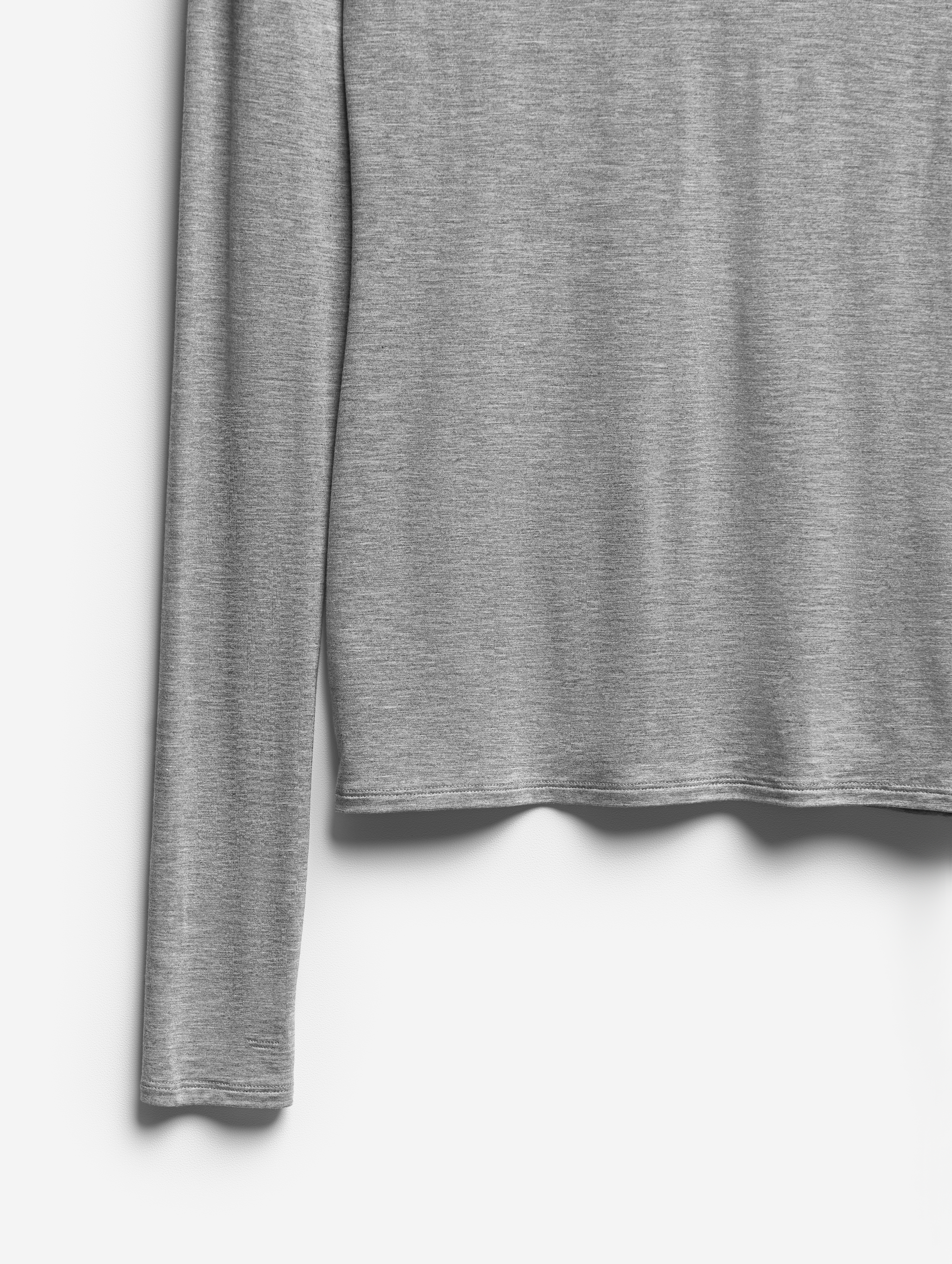 В словаре внутреннего пользования дизайн-команды Ushatava есть термин Sleek Fit. В переводе c английского слово sleek означает «гладкий», «изящный», что хорошо описывает силуэт этого лонгслива. Изделие тактично подстраивается под изгибы тела. У модели узкая горловина и удлиненные рукава, которые собираются в складки на запястьях. Лонгслив выполнен из вискозного трикотажа: он мягкий, гладкий, приятен для тела, хорошо тянется и не мнется.