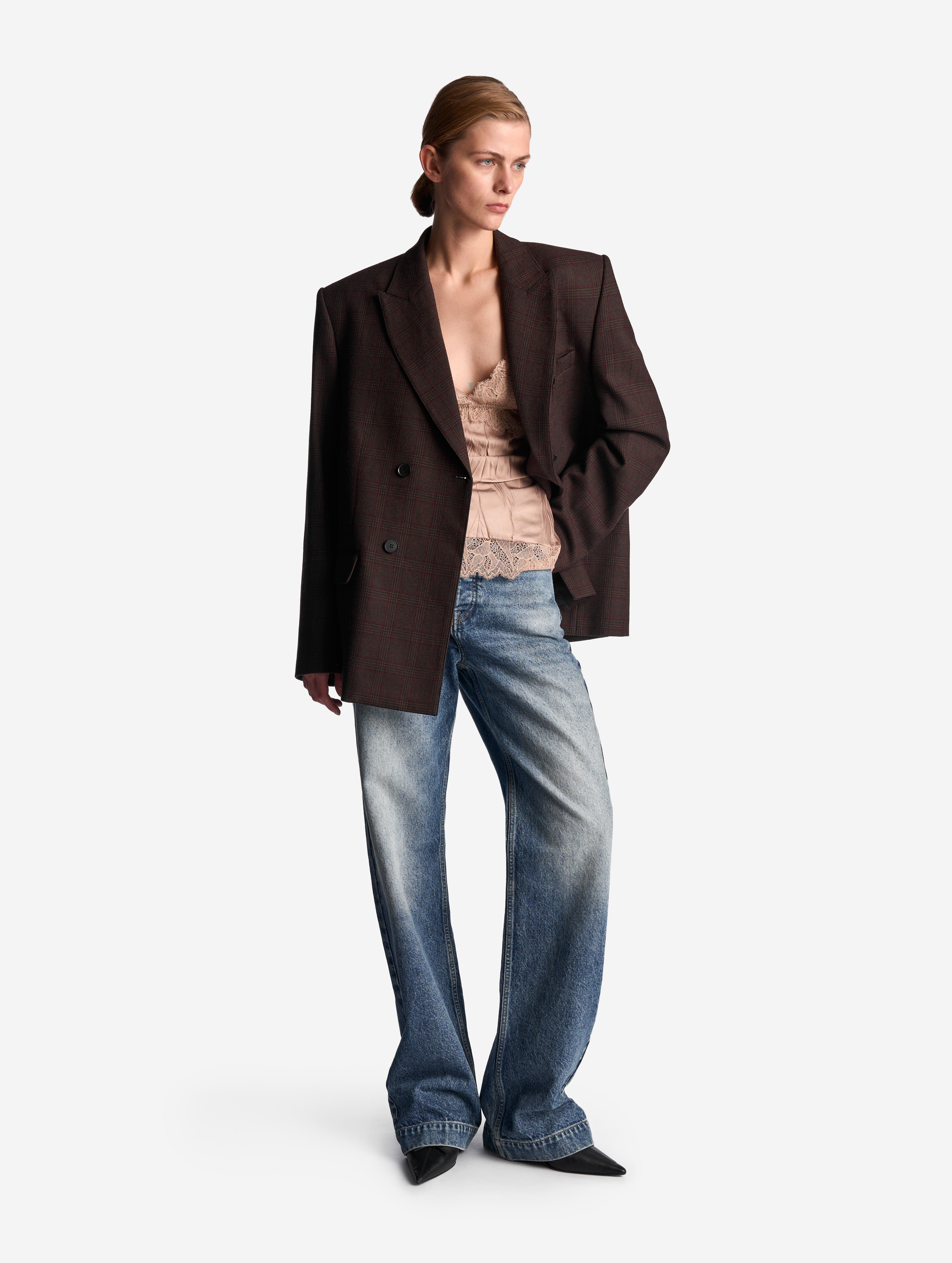 «При взгляде на это изделие кажется, будто мы взяли классический прямоугольный пиджак, отсканировали его и увеличили в полтора раза. Именно такого эффекта мы и добивались», — говорит Нино Шаматава, креативный директор Ushatava. Пиджак Extra Over выполнен из костюмной шерстяной ткани — это теплый и формоустойчивый материал. У изделия оверсайз-силуэт и универсальная посадка, поэтому его могут носить и мужчины. У пиджака есть два функциональных кармана и один нагрудный, который по канонам портновского мастерства застрочен. Внутри предмет обработан подкладом. Застегивается на брендированные пуговицы.