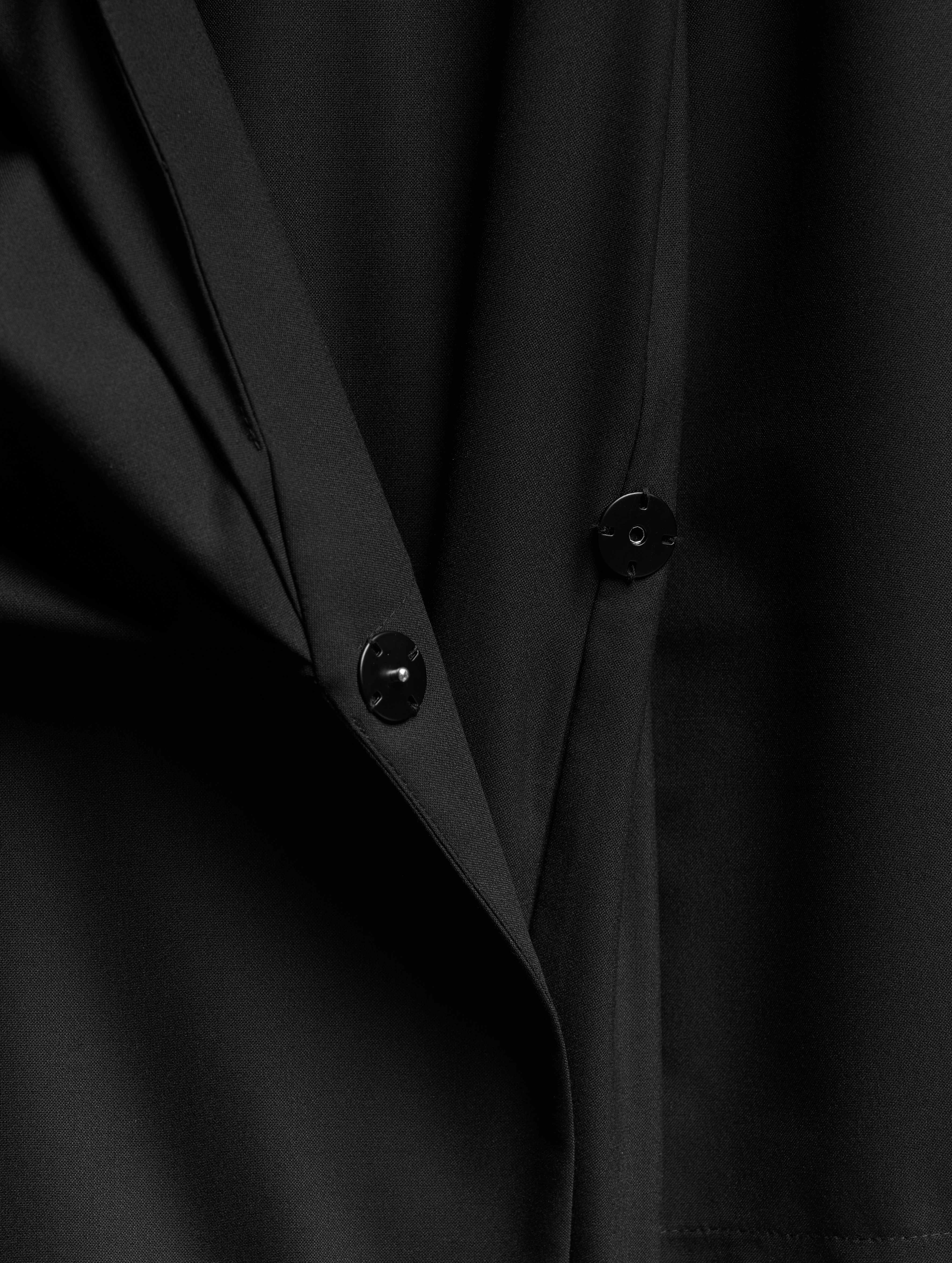 В обновленной версии у платья сдержанный прямой силуэт и выраженная линия плеч, которая поддерживается мягкими подплечниками. При желании их можно снять, они крепятся к ткани при помощи маленьких кнопок. Для более основательной фиксации предусмотрены внутренние кнопки.