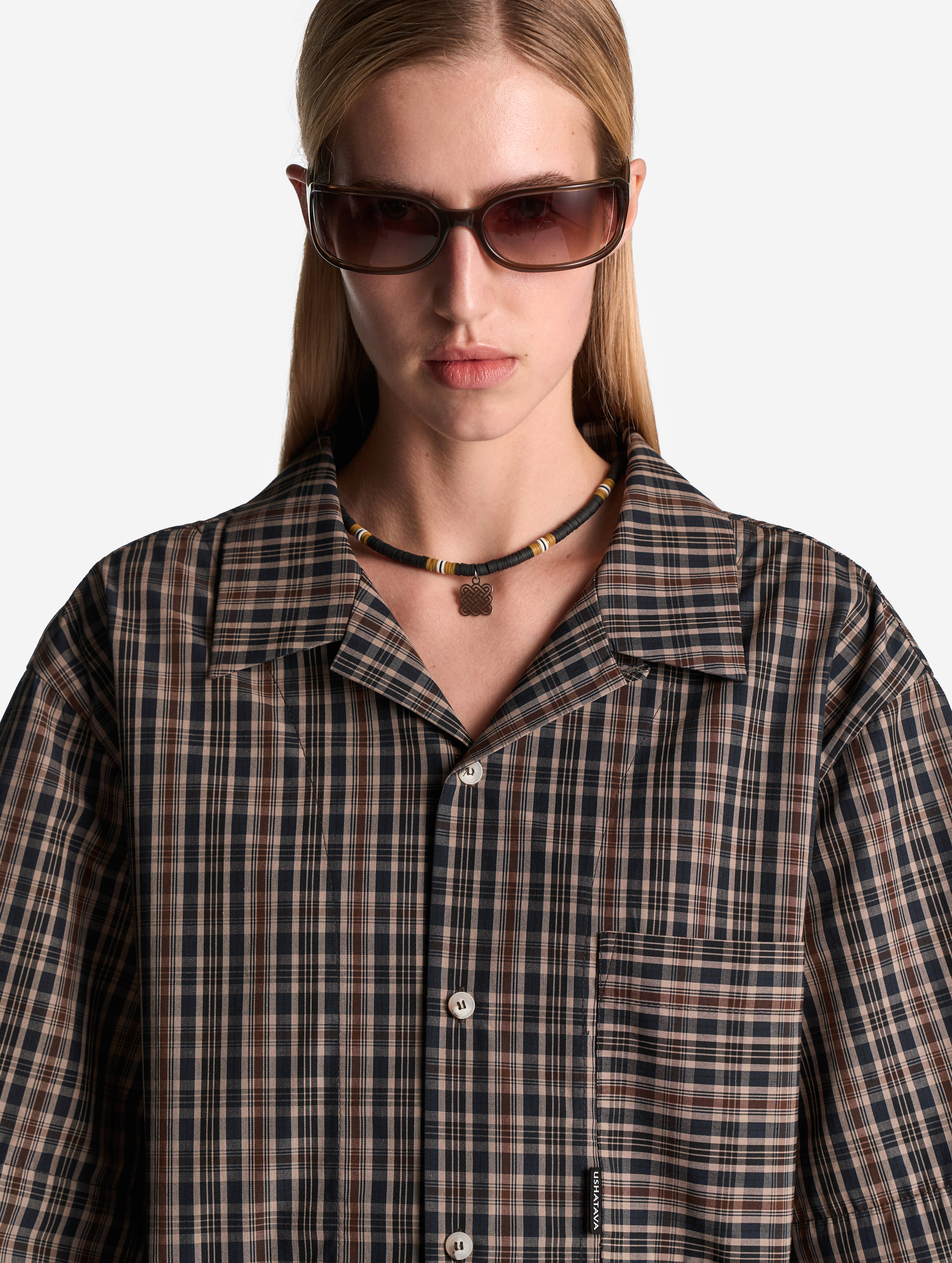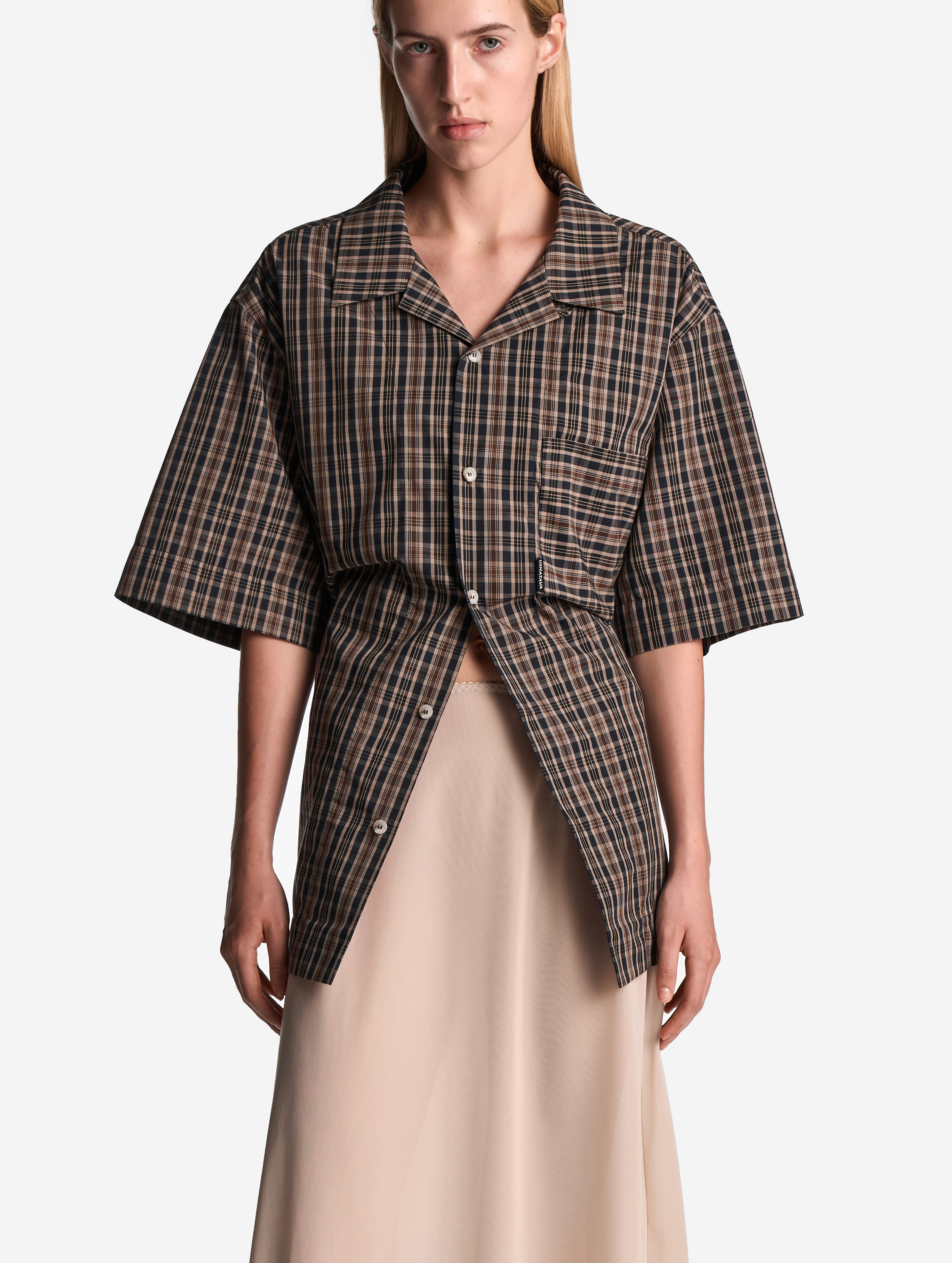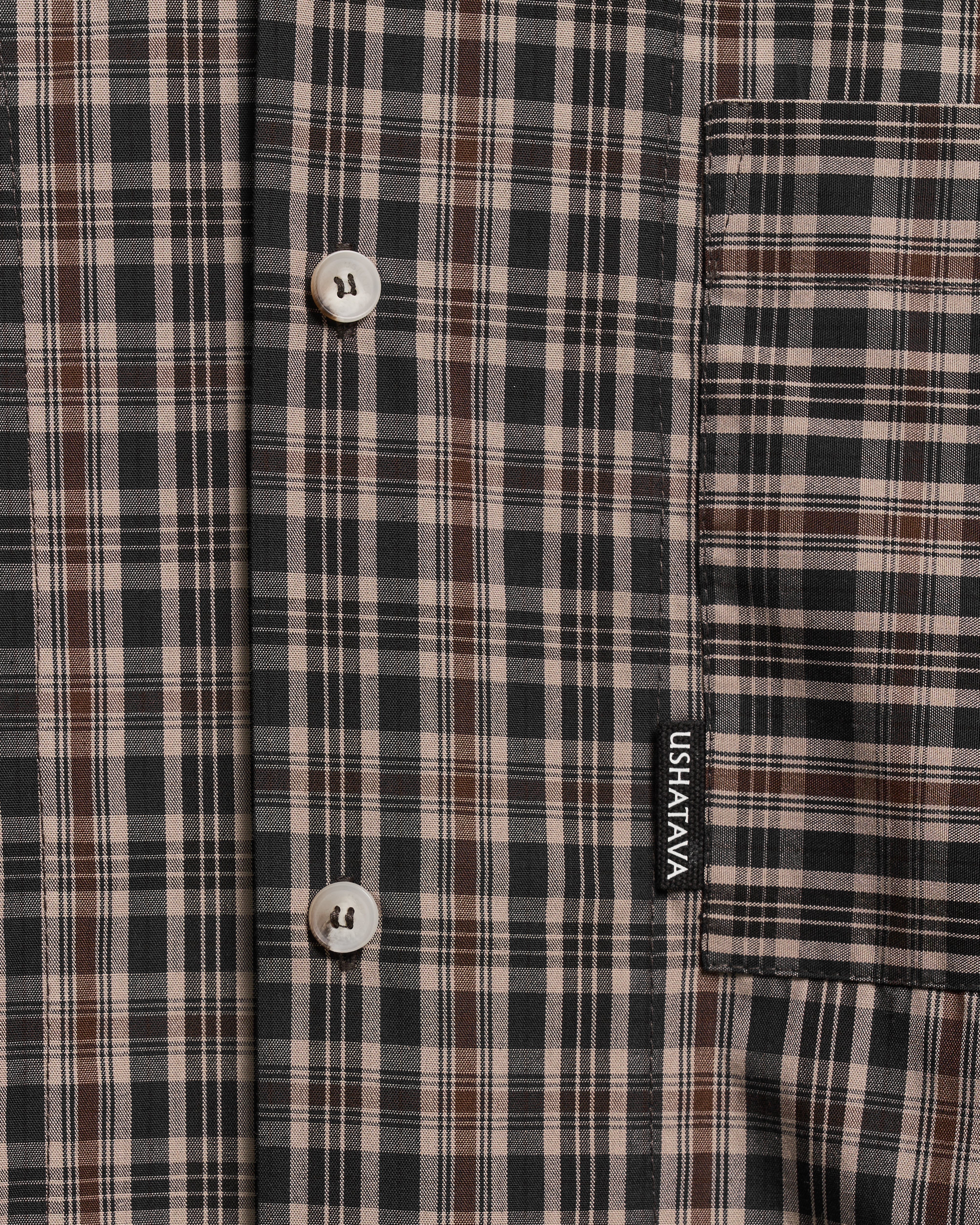 Grandpa Fit — новое понятие в словаре линии Garderobe. Этот силуэт вдохновлен воспоминаниями дизайн-команды Ushatava о гардеробе родителей. Рубашка Grandpa's Fit наследует ключевые черты мужской рубашки с винтажным характером: классический воротник со стойкой, спущенная линия плеча, свободные рукава до сгиба локтя, глубокий нагрудный карман.
