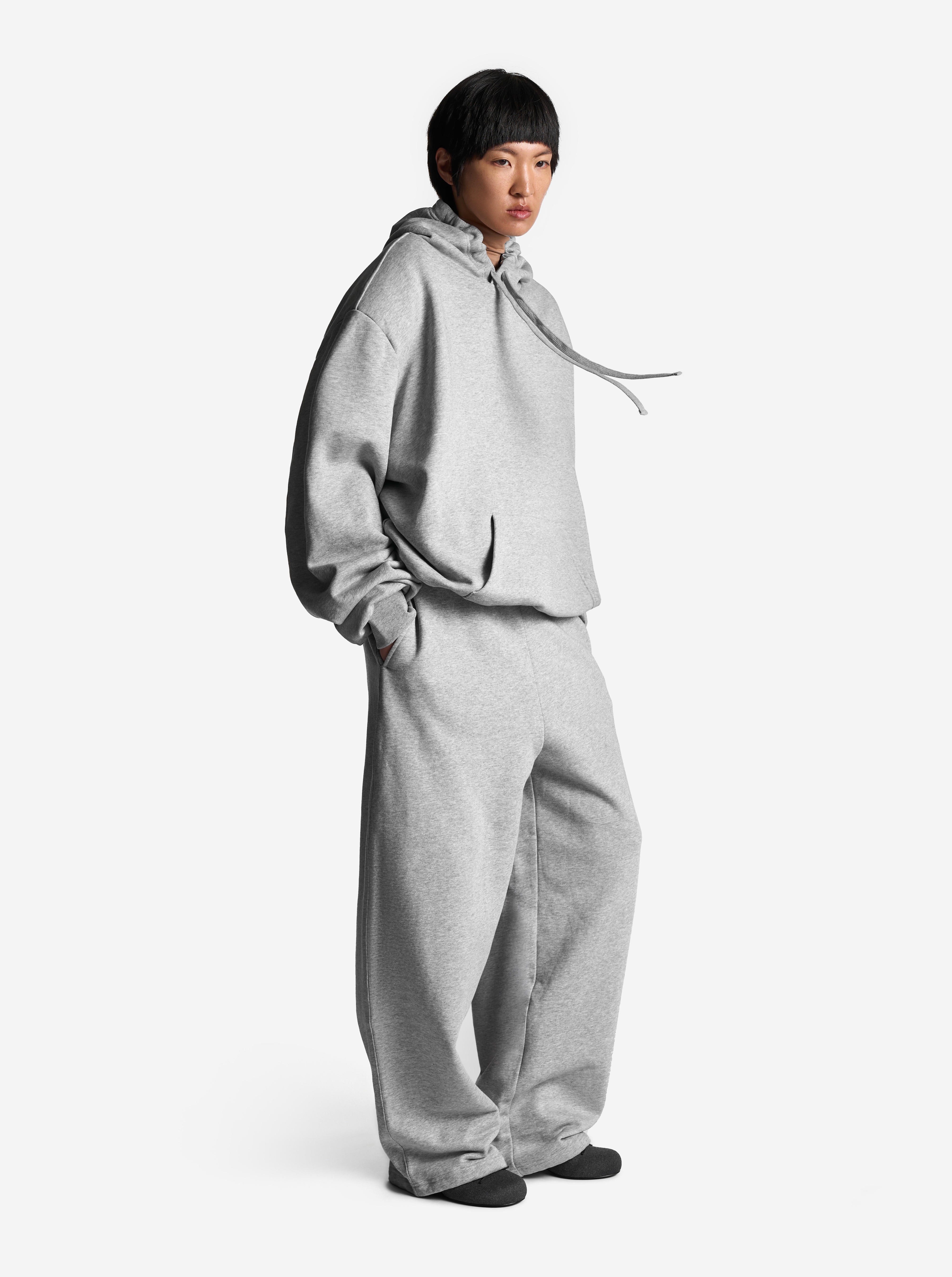 Это худи оверсайз-силуэта можно носить на две стороны. Изделие выполнено из футера, а внутри обработано тонким трикотажем. Вывернутая наизнанку, эта вещь выглядит так, будто поверх худи надели футболку. На подкладке находятся плечевые карманы, предназначенные для фиксации мягких подплечников, которые при желании можно убрать. Удлиненный рукав и низ изделия обработаны резинкой из кашкорсе. Спинка худи украшена фирменной нашивкой Ushatava. Из деталей: карман-кенгуру, капюшон на шнурке.