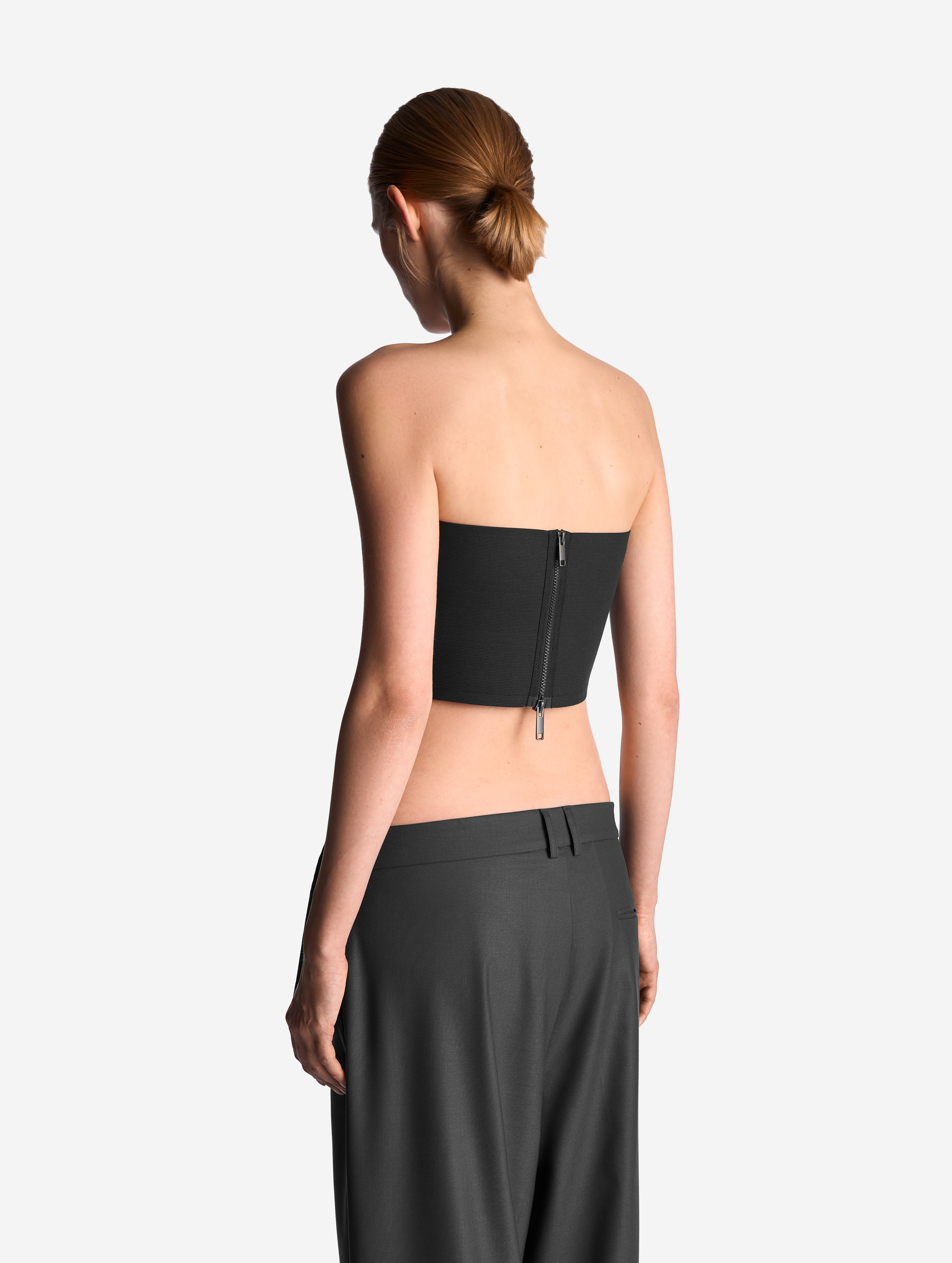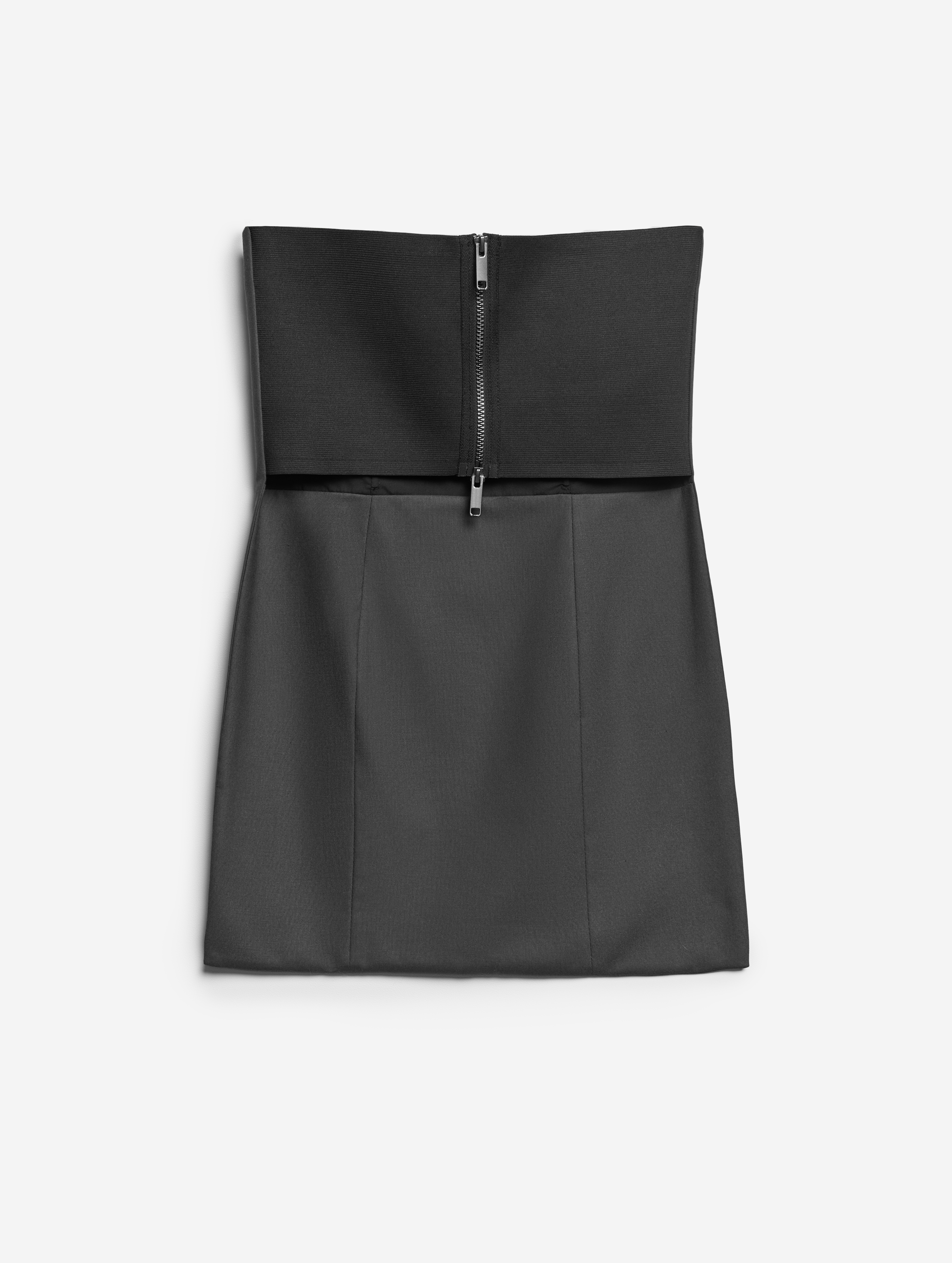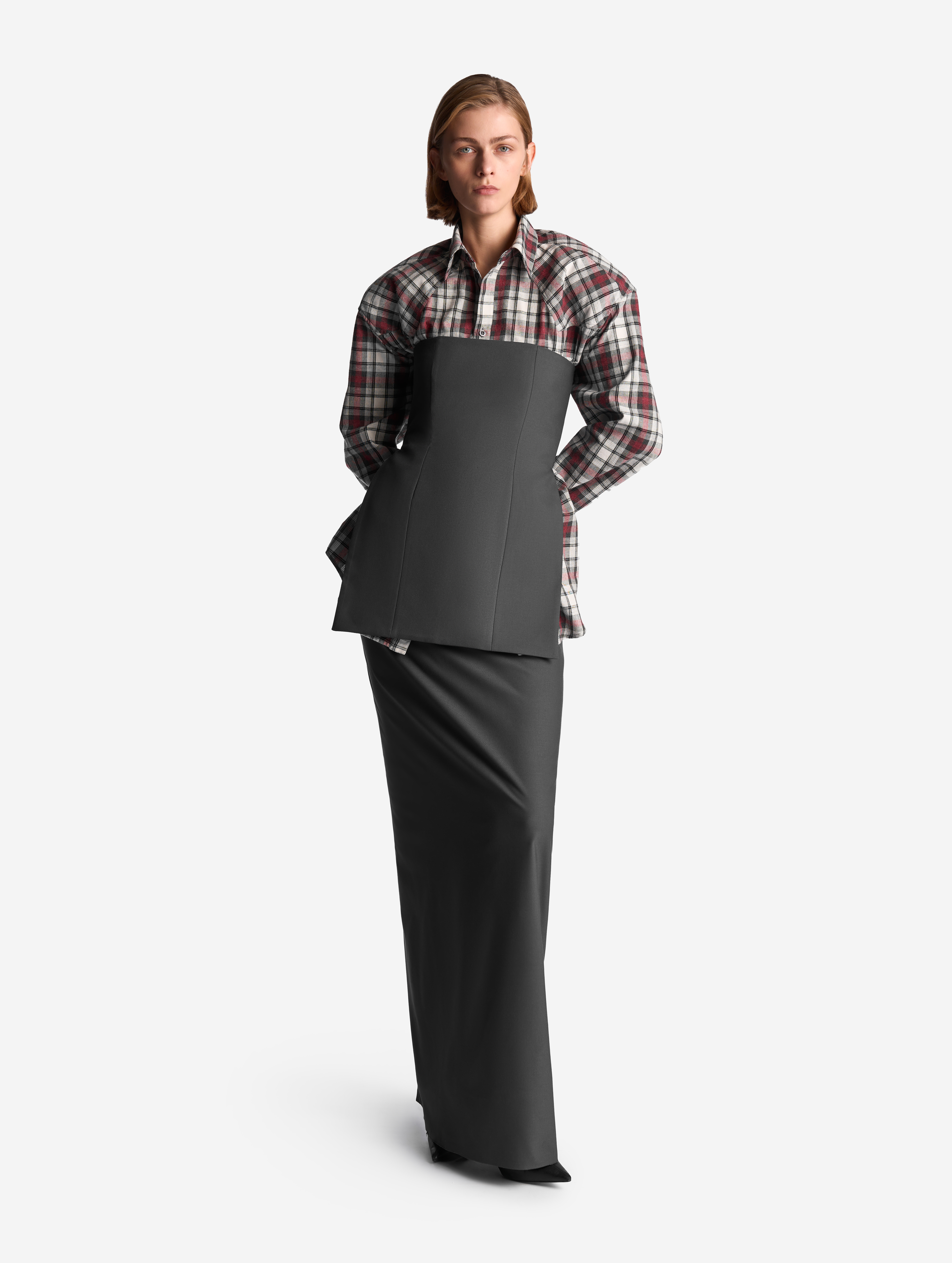 Особое внимание дизайн-команда модного Дома уделила форме и длине, при которых в корсете будет комфортно сидеть и двигаться. У изделия асимметричная конструкция: его передняя часть представляет собой силуэтное полотно с рельефными швами, а задняя — широкую эластичную резинку. Мы позаботились о том, чтобы корсет было приятно носить и на голое тело, поэтому область груди обработана подкладом из хлопка. Изделие застегивается на молнию и крючок.