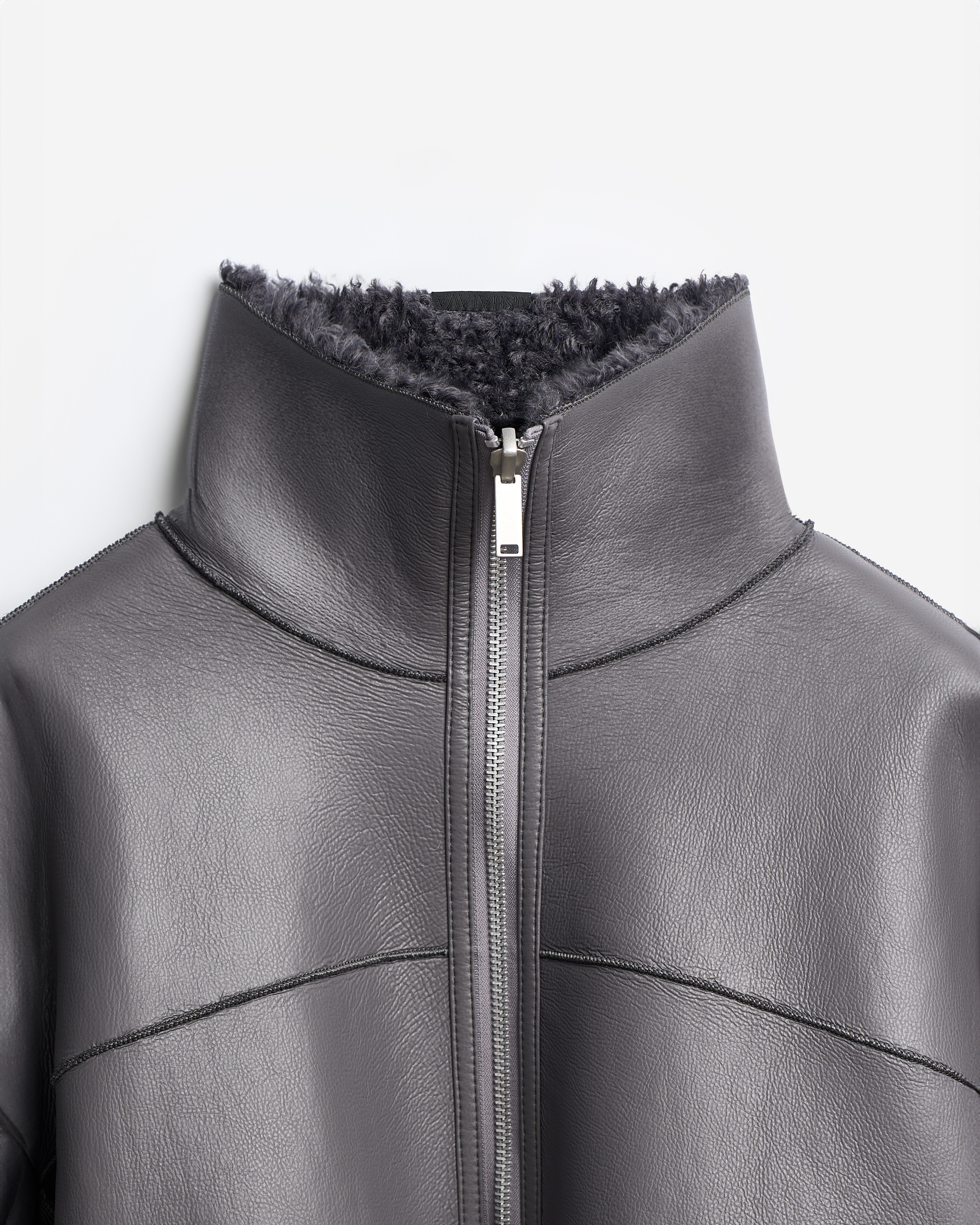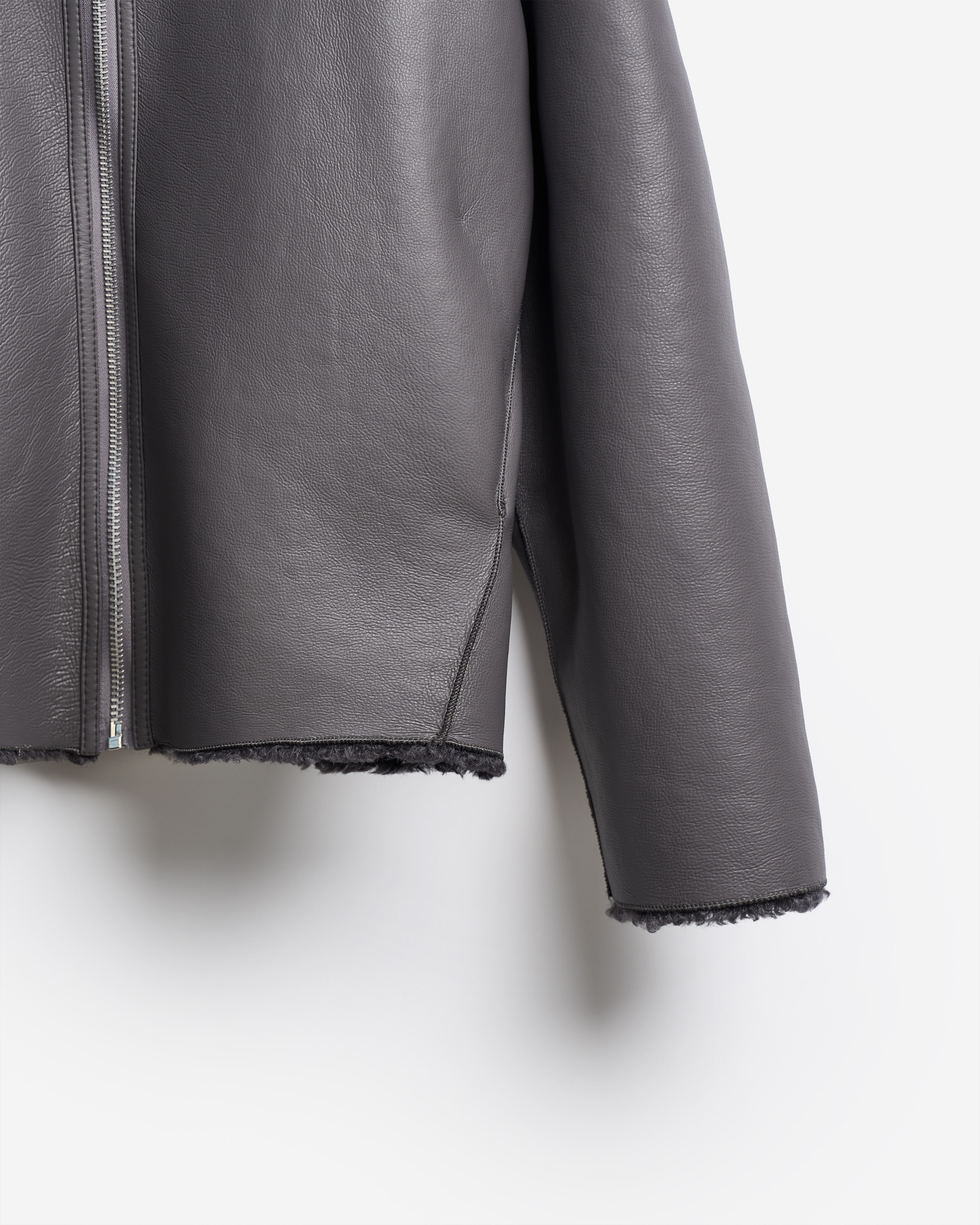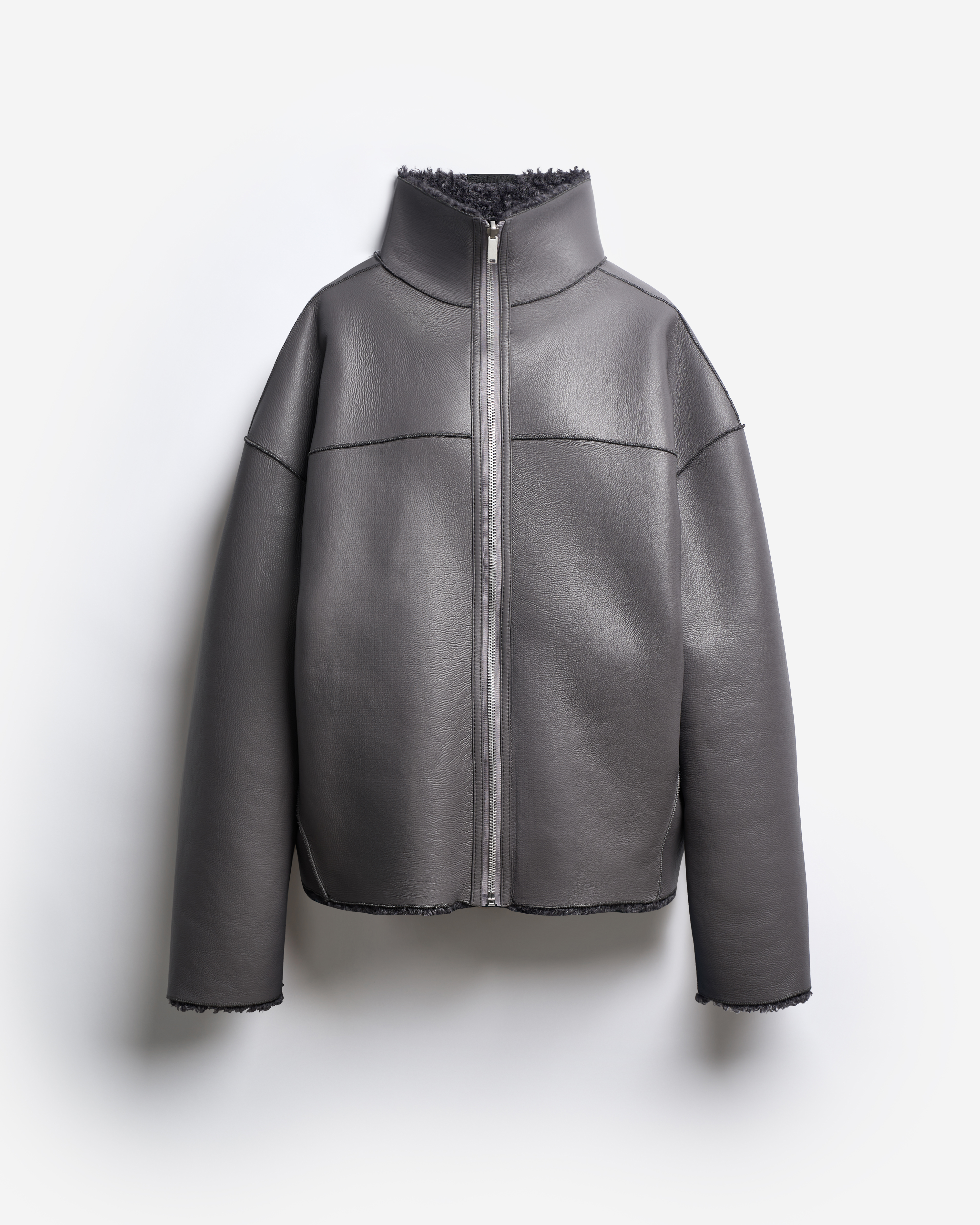 У этой дубленки прямой укороченный силуэт с универсальной посадкой. Она выполнена из глянцевой фактурной экокожи, проклеенной искусственным мехом под овчину. Все швы изделия выведены на внешнюю сторону — это один из любимых дизайн-приемов Ushatava. Дубленка застегивается на двухзамковую молнию. Есть два боковых кармана, которые сохраняют свою функциональность независимо от того, какой стороной надета куртка. Рекомендуемый температурный режим — от 0°C до −10°C, с теплым свитером — до −15°C.