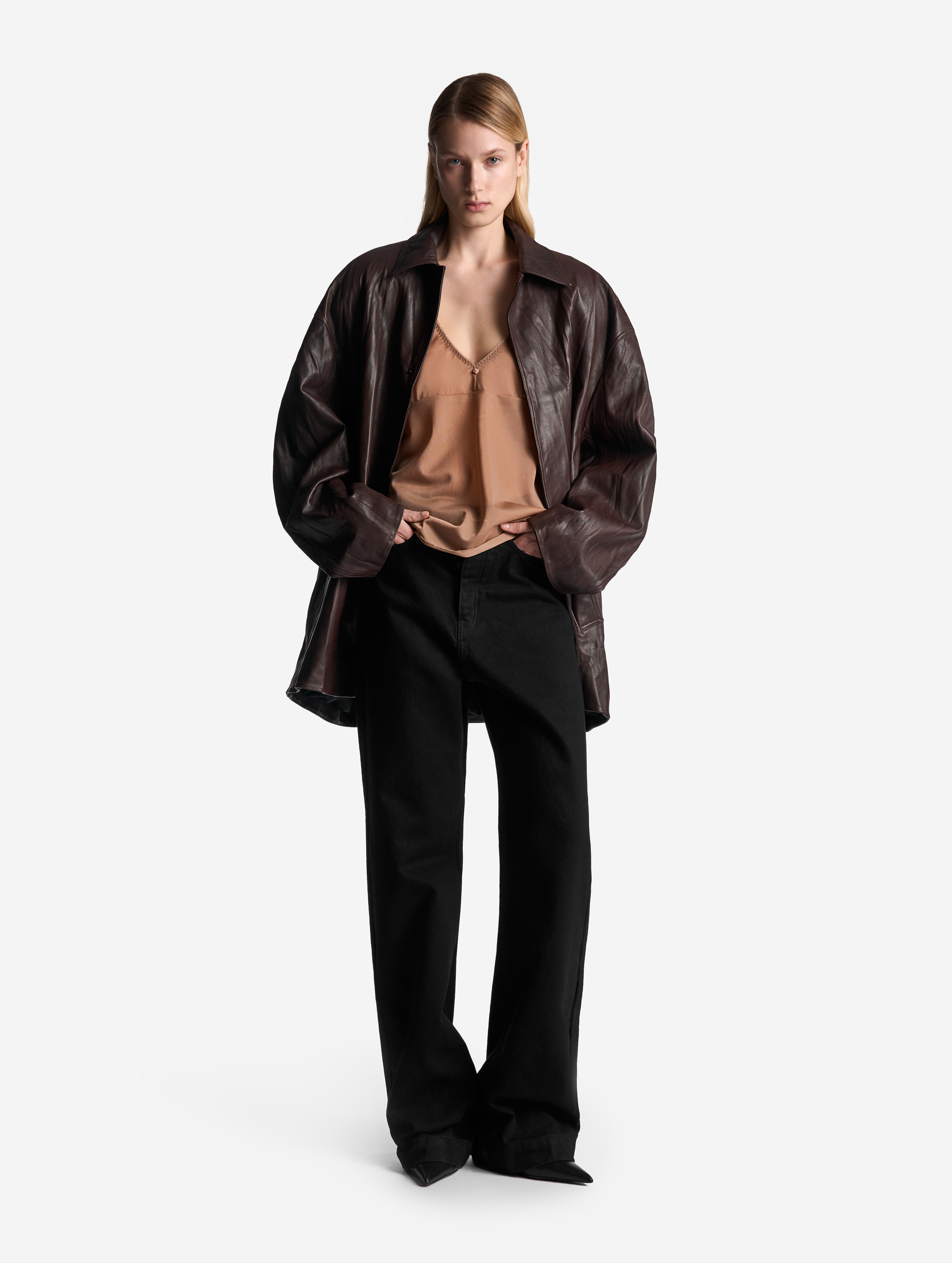 Кожаная куртка О-силуэта