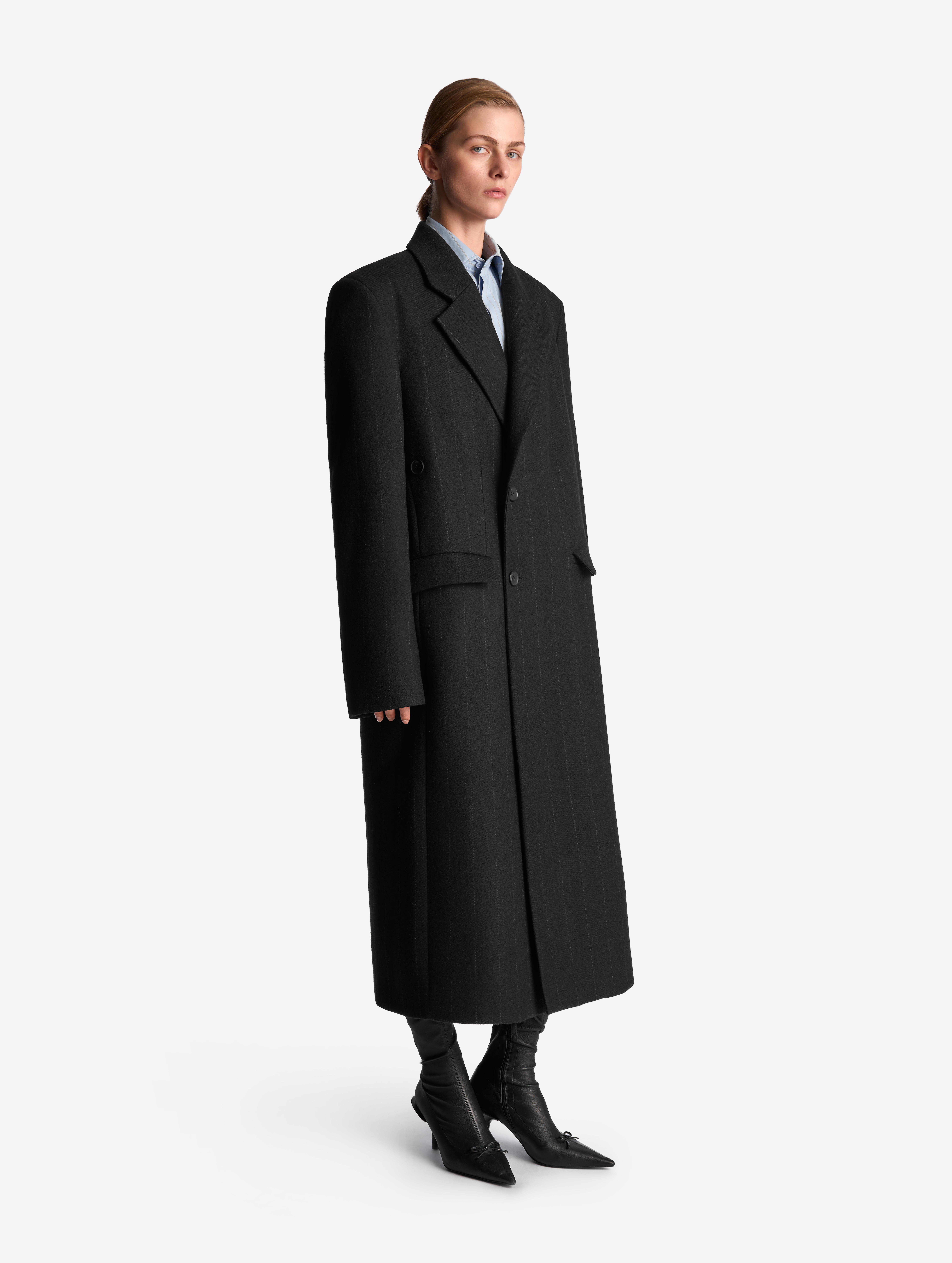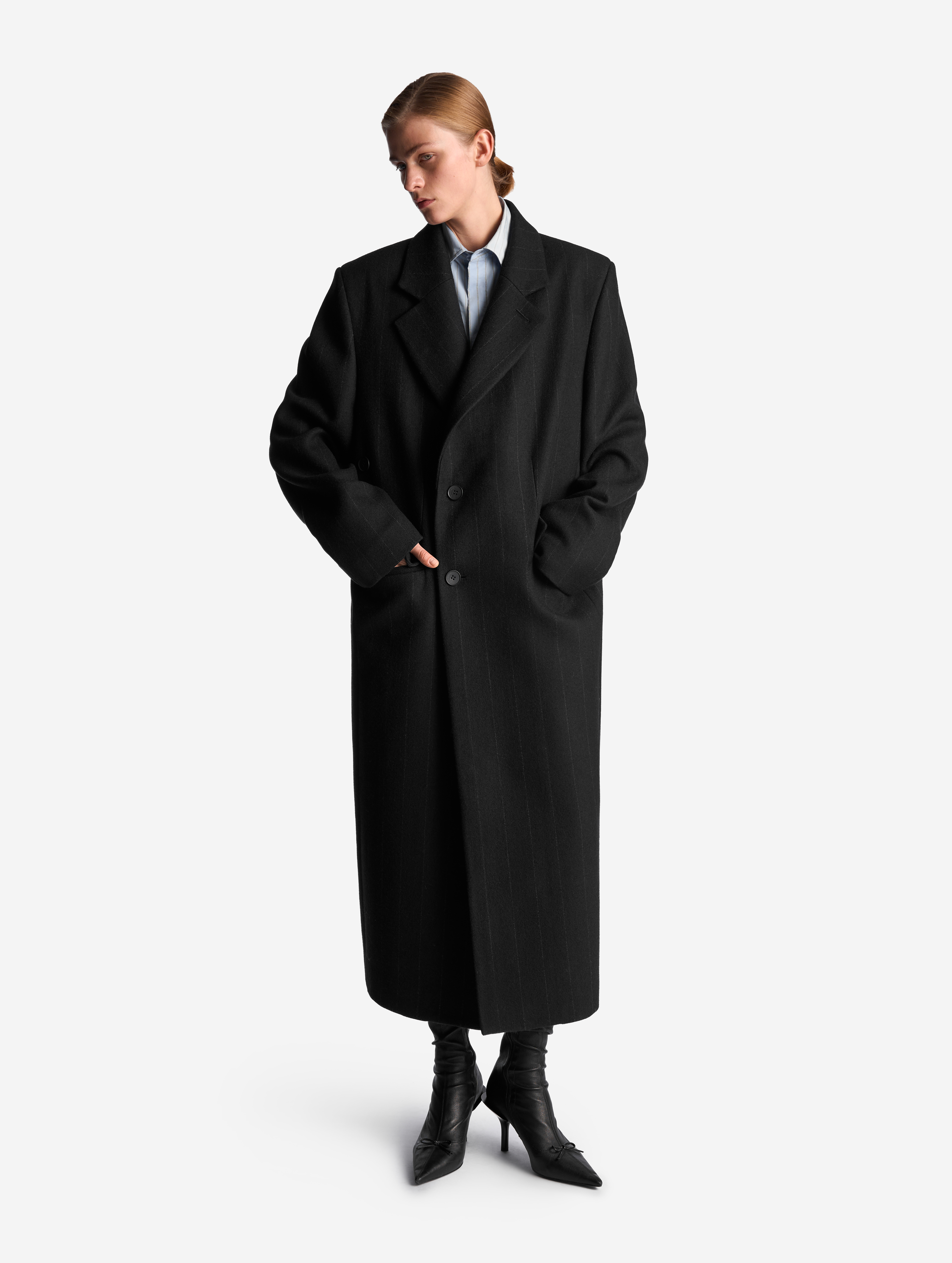 Классическое строгое пальто с английским воротником — знаковая модель Ushatava. Мы выпустили его обновленную версию. Теперь у пальто более универсальная посадка, рассчитанная в том числе на мужскую фигуру. У него прямой оверсайз-силуэт и смещенная застежка. Также у пальто есть дополнительная пуговица, позволяющая приталивать силуэт. Еще одна пуговица пришита к лацкану — теперь воротник можно фиксировать в закрытом положении для защиты от ветра. Изделие полностью обработано подкладом.