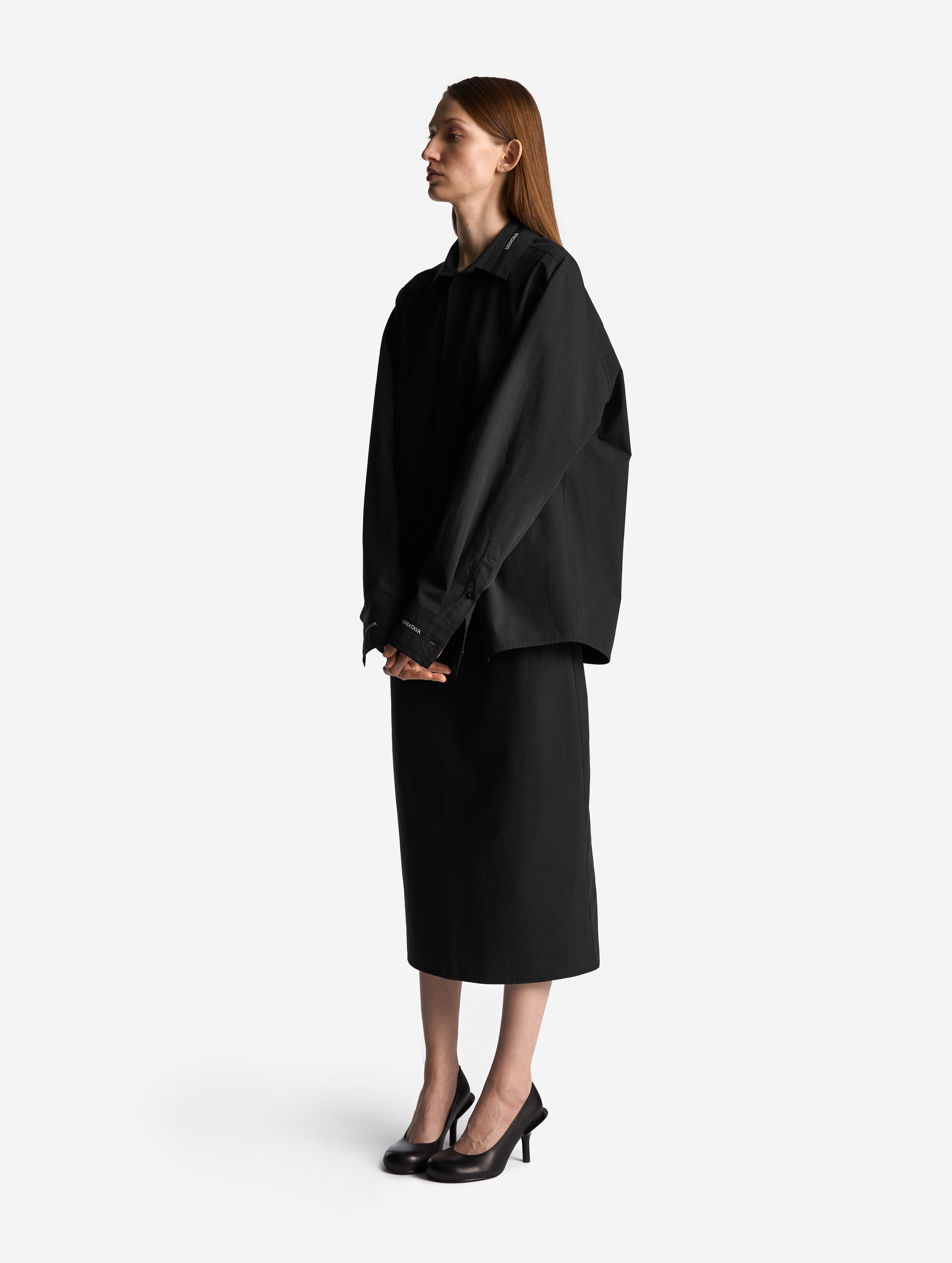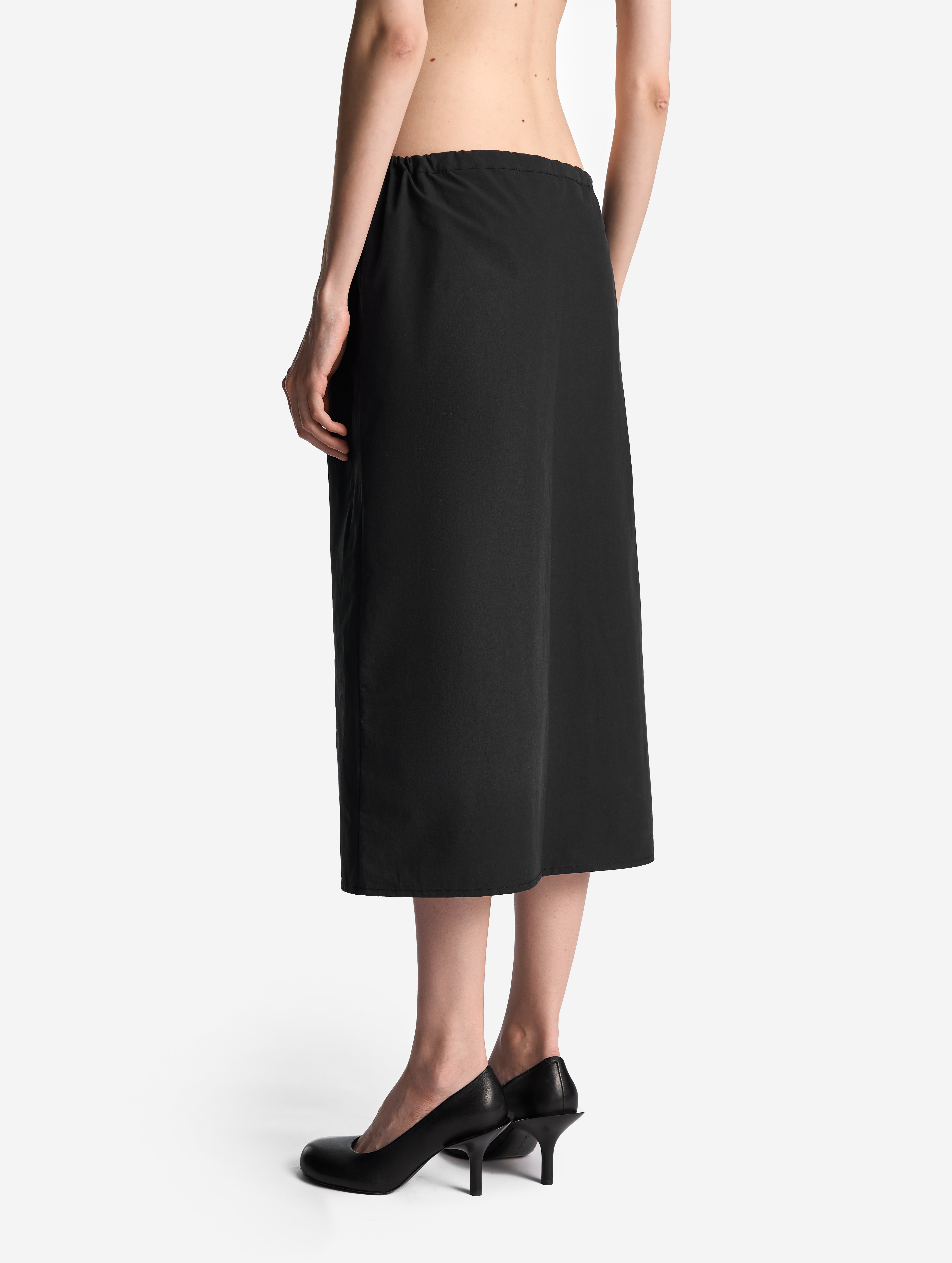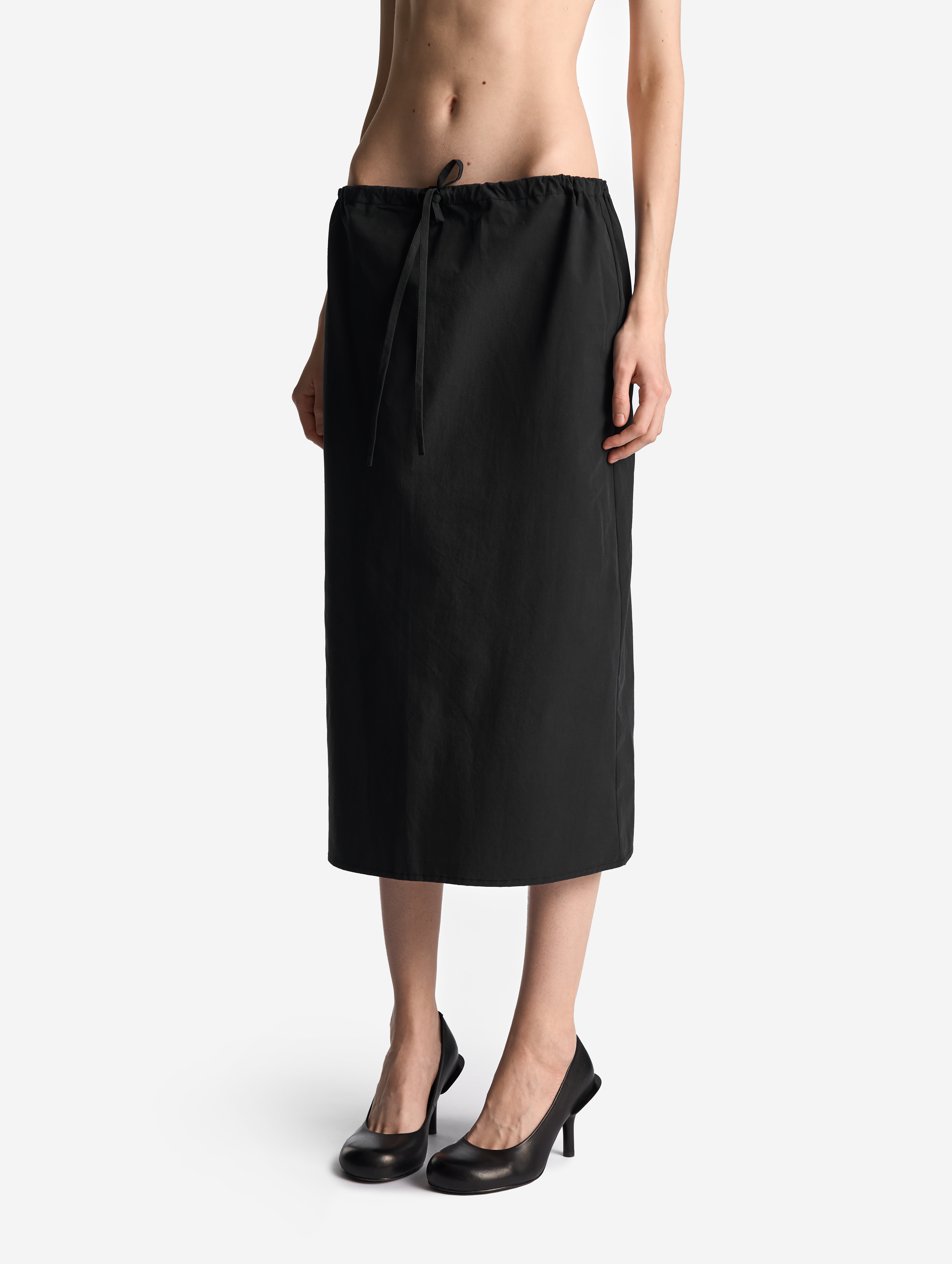 У этого лаконичного подъюбника прямой силуэт. Особый характер изделию придает материал: модель выполнена из вареного хлопка с «хрустящей» фактурой, напоминающей мятую бумагу. Сквозь верхний срез подъюбника протянут шнурок, который позволяет регулировать посадку вещи на бедрах. Такой предмет гардероба дает возможность экспериментировать и собирать сложные многослойные образы. Подъюбник необязательно надевать исключительно под платья и юбки — мы предлагаем носить его в том числе поверх брюк.