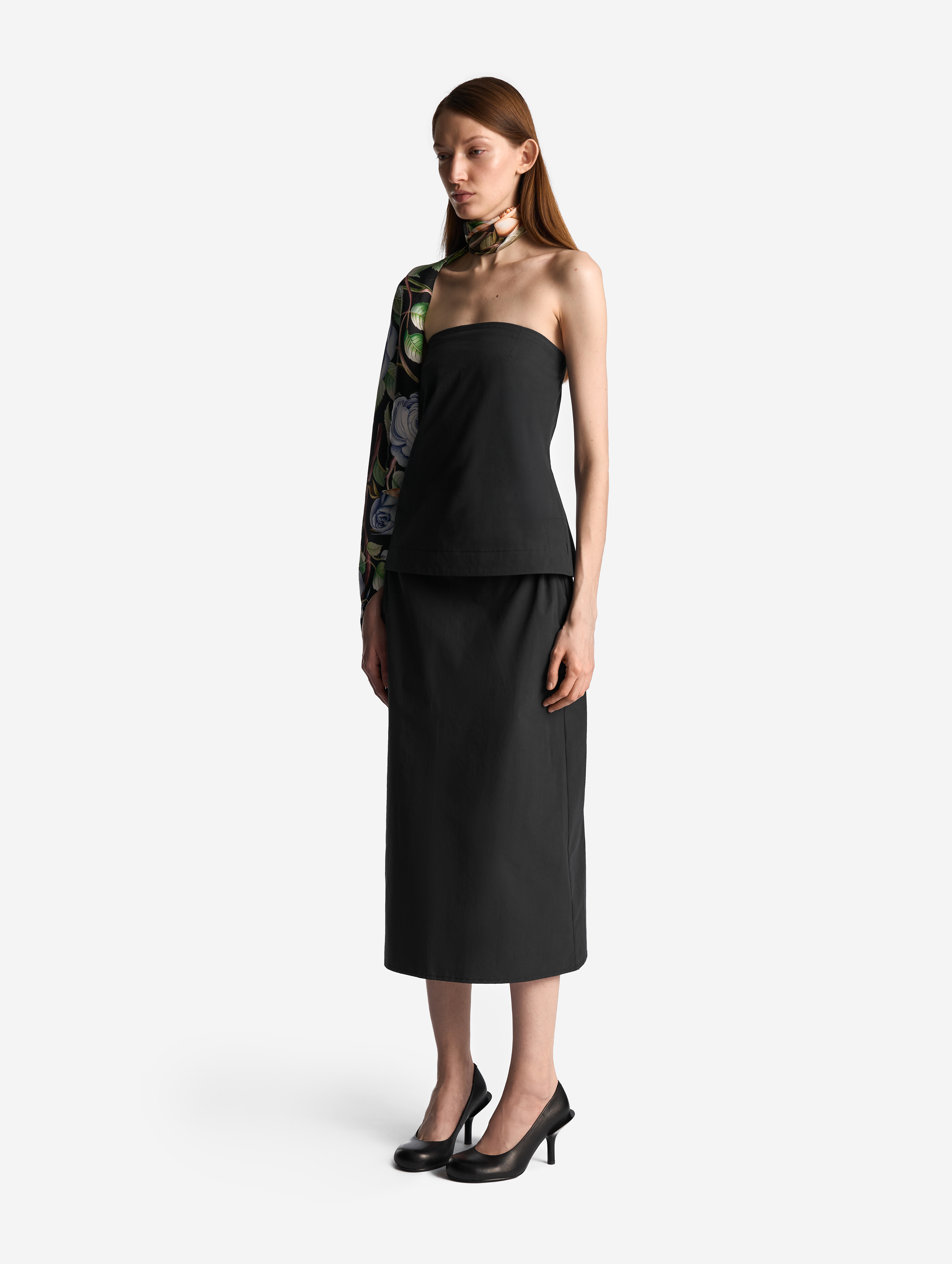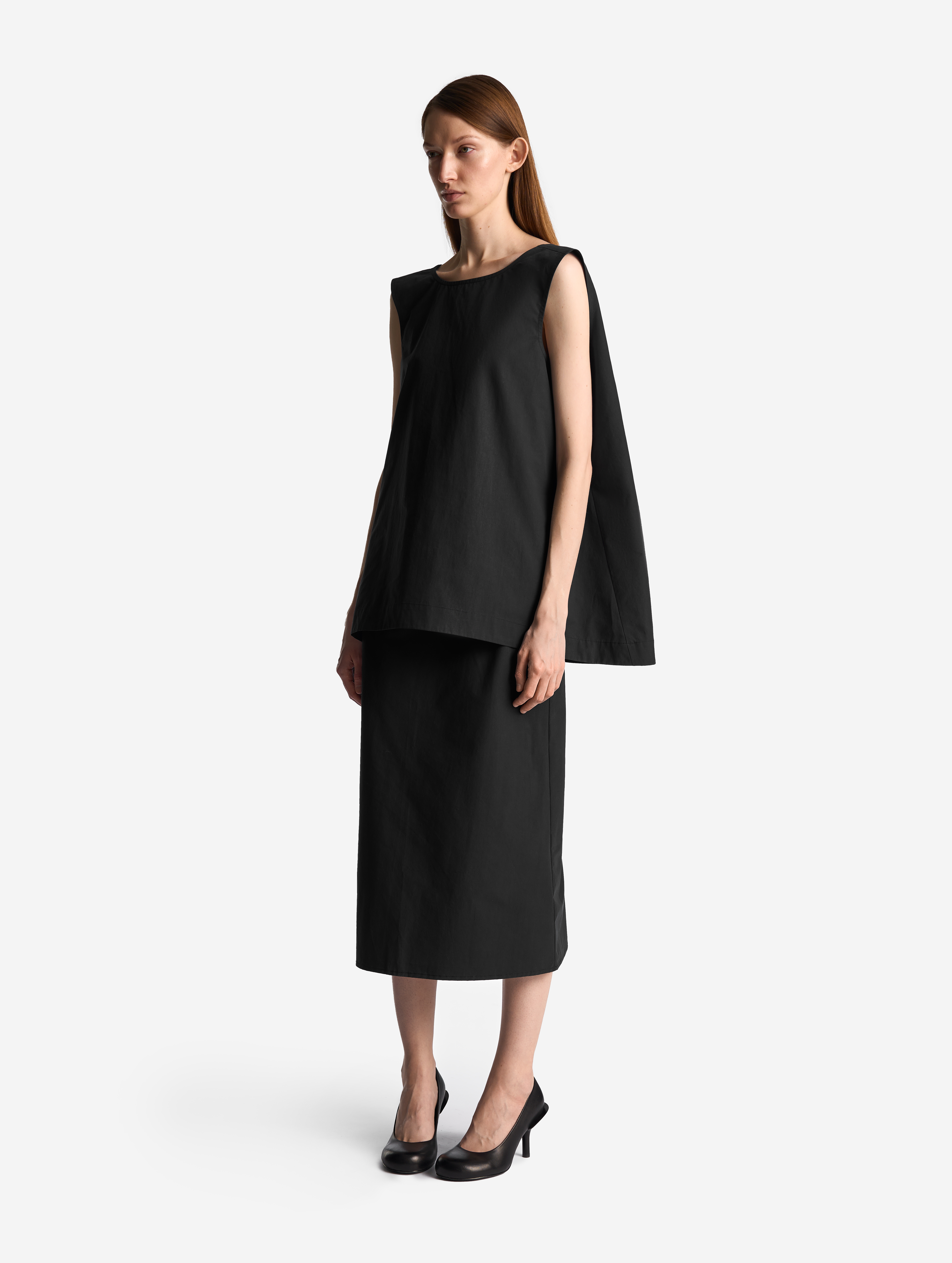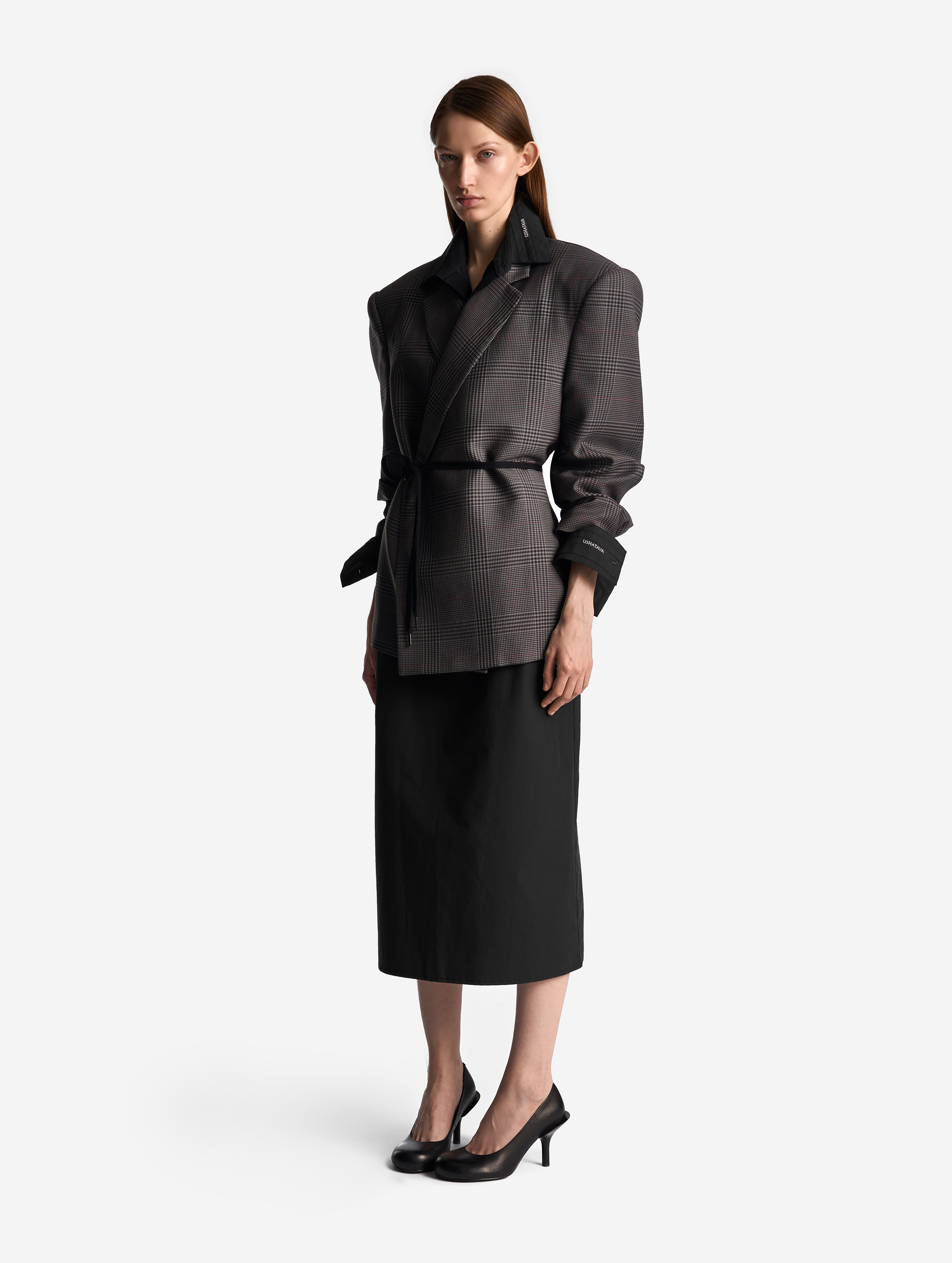 У этого лаконичного подъюбника прямой силуэт. Особый характер изделию придает материал: модель выполнена из вареного хлопка с «хрустящей» фактурой, напоминающей мятую бумагу. Сквозь верхний срез подъюбника протянут шнурок, который позволяет регулировать посадку вещи на бедрах. Такой предмет гардероба дает возможность экспериментировать и собирать сложные многослойные образы. Подъюбник необязательно надевать исключительно под платья и юбки — мы предлагаем носить его в том числе поверх брюк.