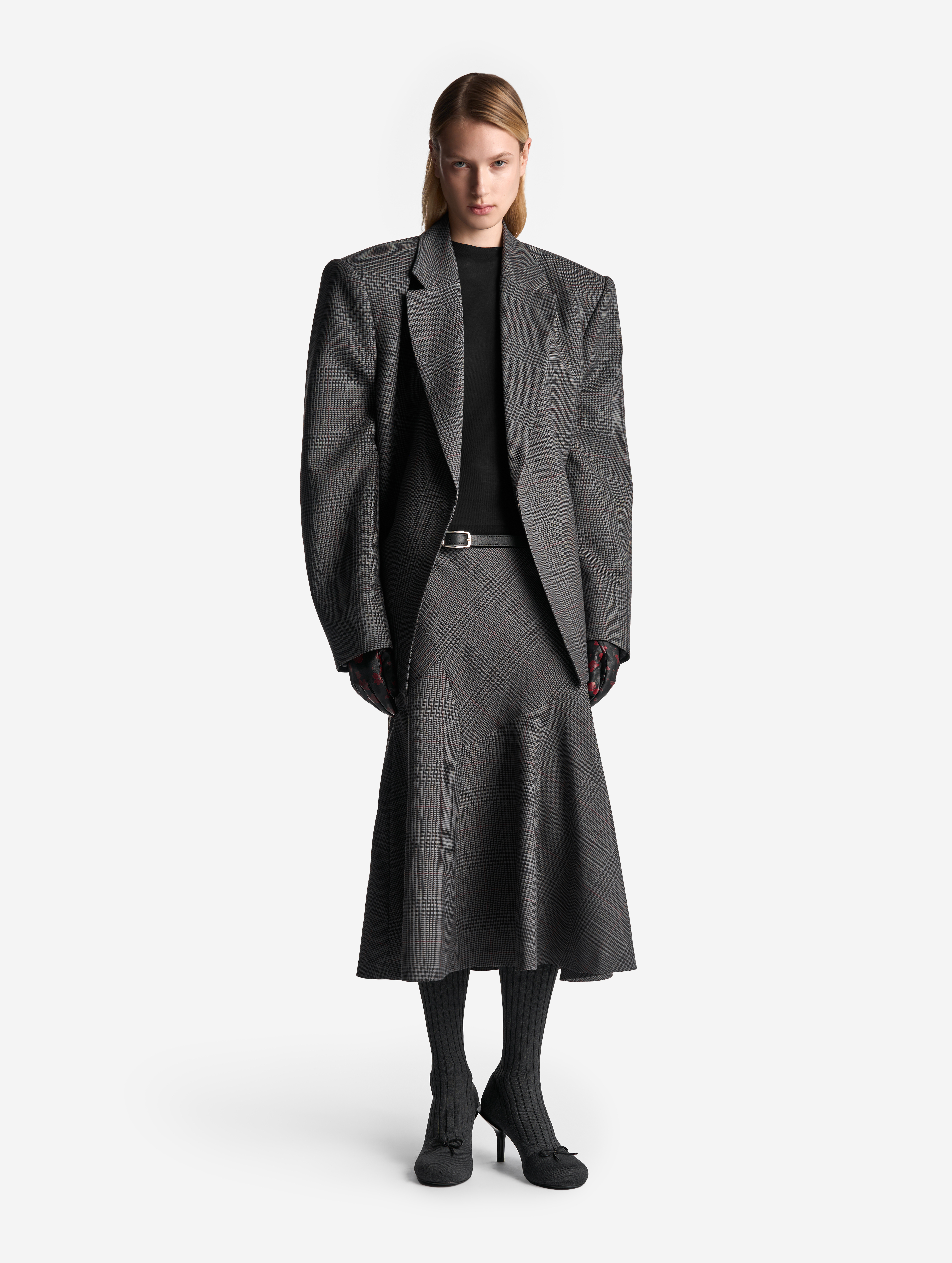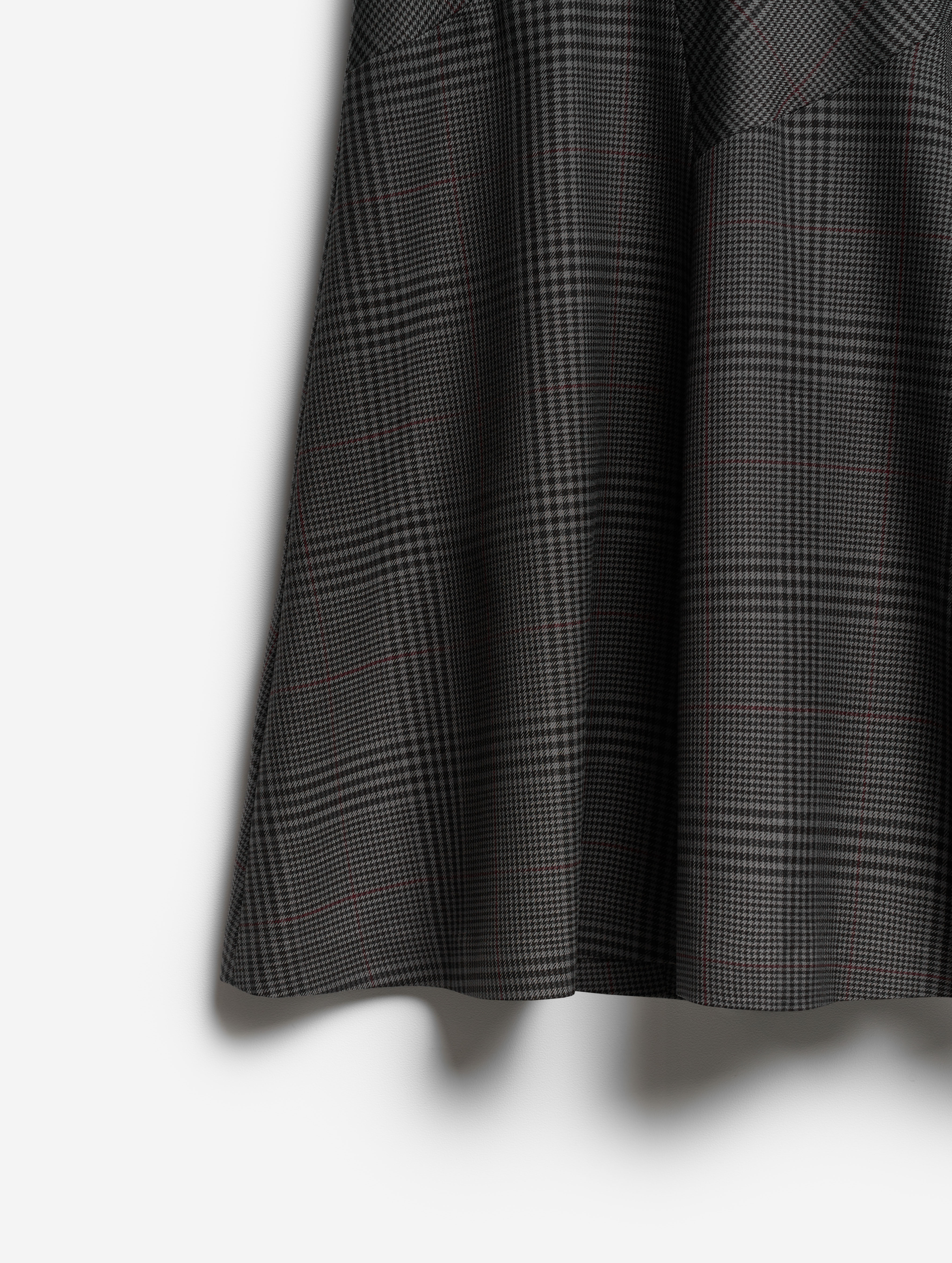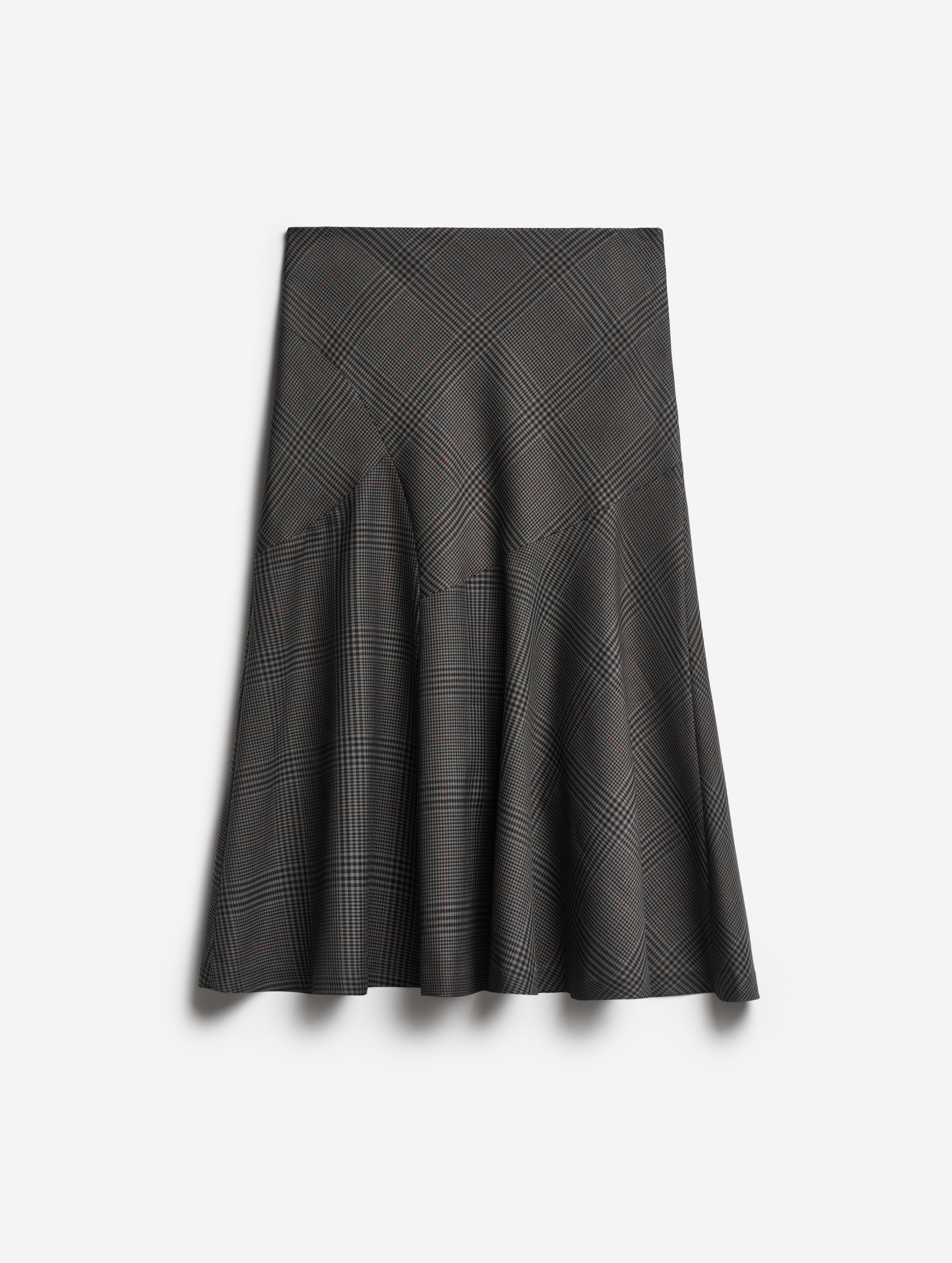 Неклассическая юбка годе — силуэт, ставший для Ushatava иконическим. Конструкция новой модели составлена из клиньев разной конфигурации: такой прием дает асимметрию и сочетание разных «ритмов» геометрического принта. Дизайнеры Ushatava сознательно нарушают правила и никогда не стыкуют рисунок по шву.