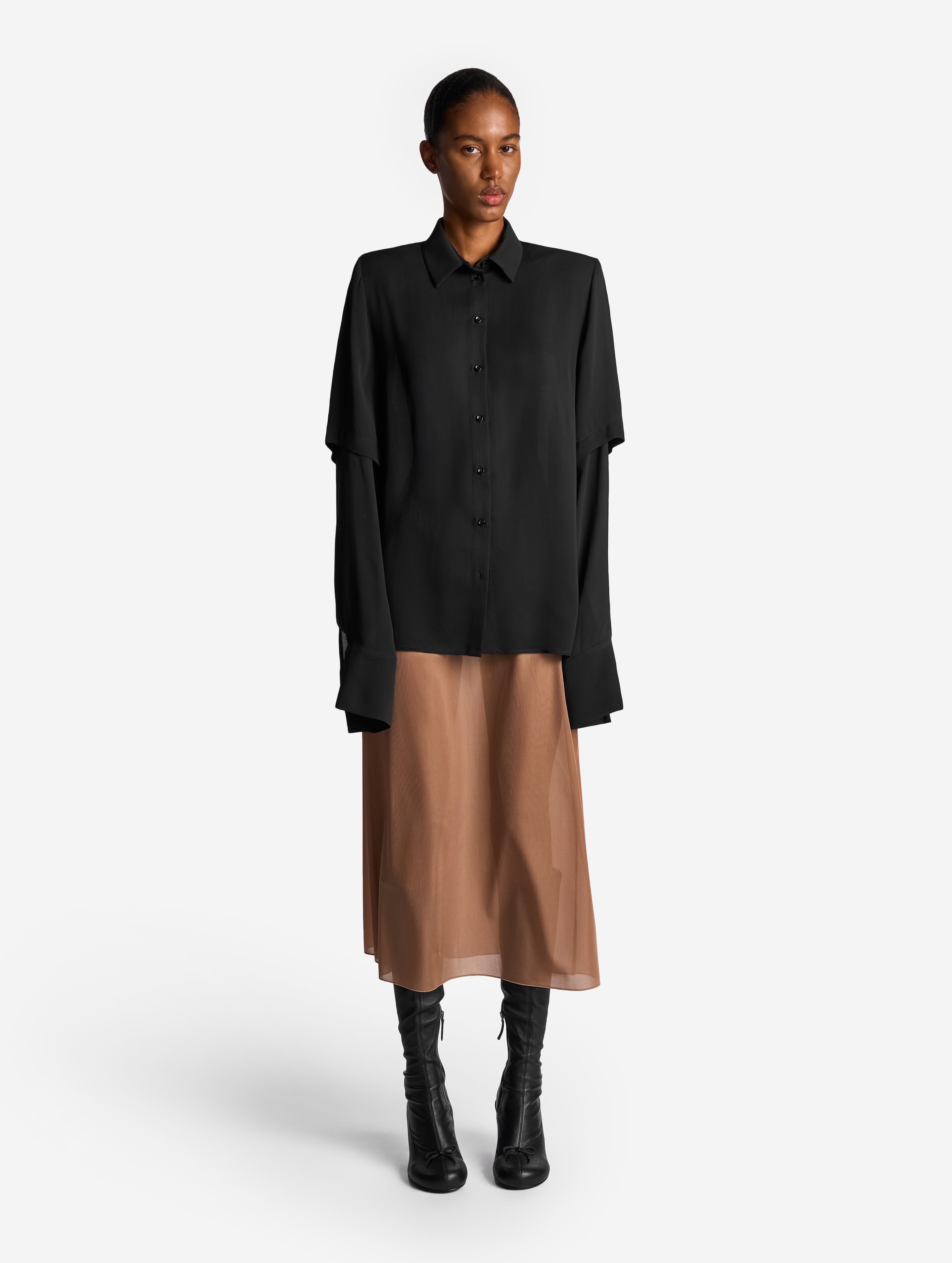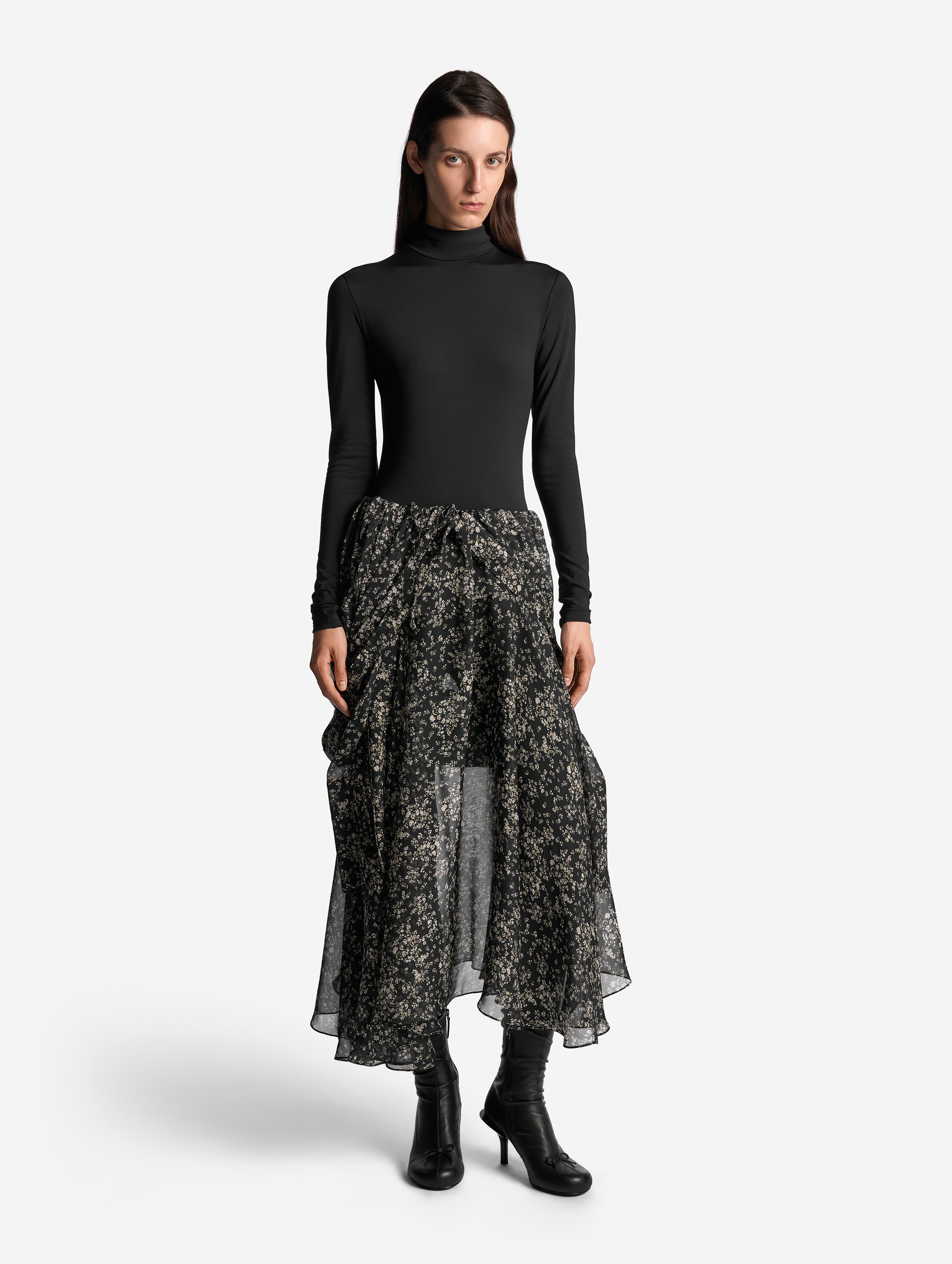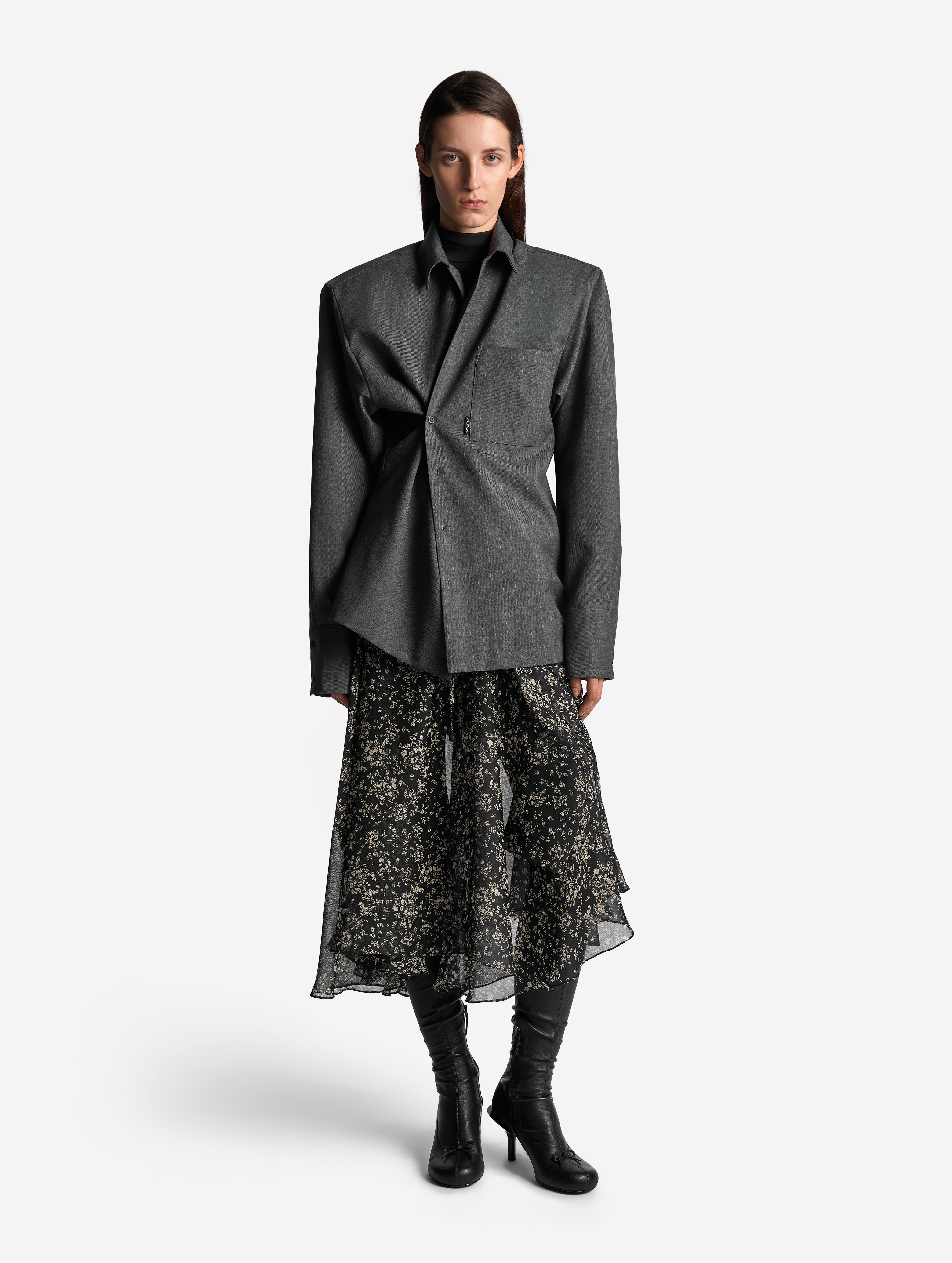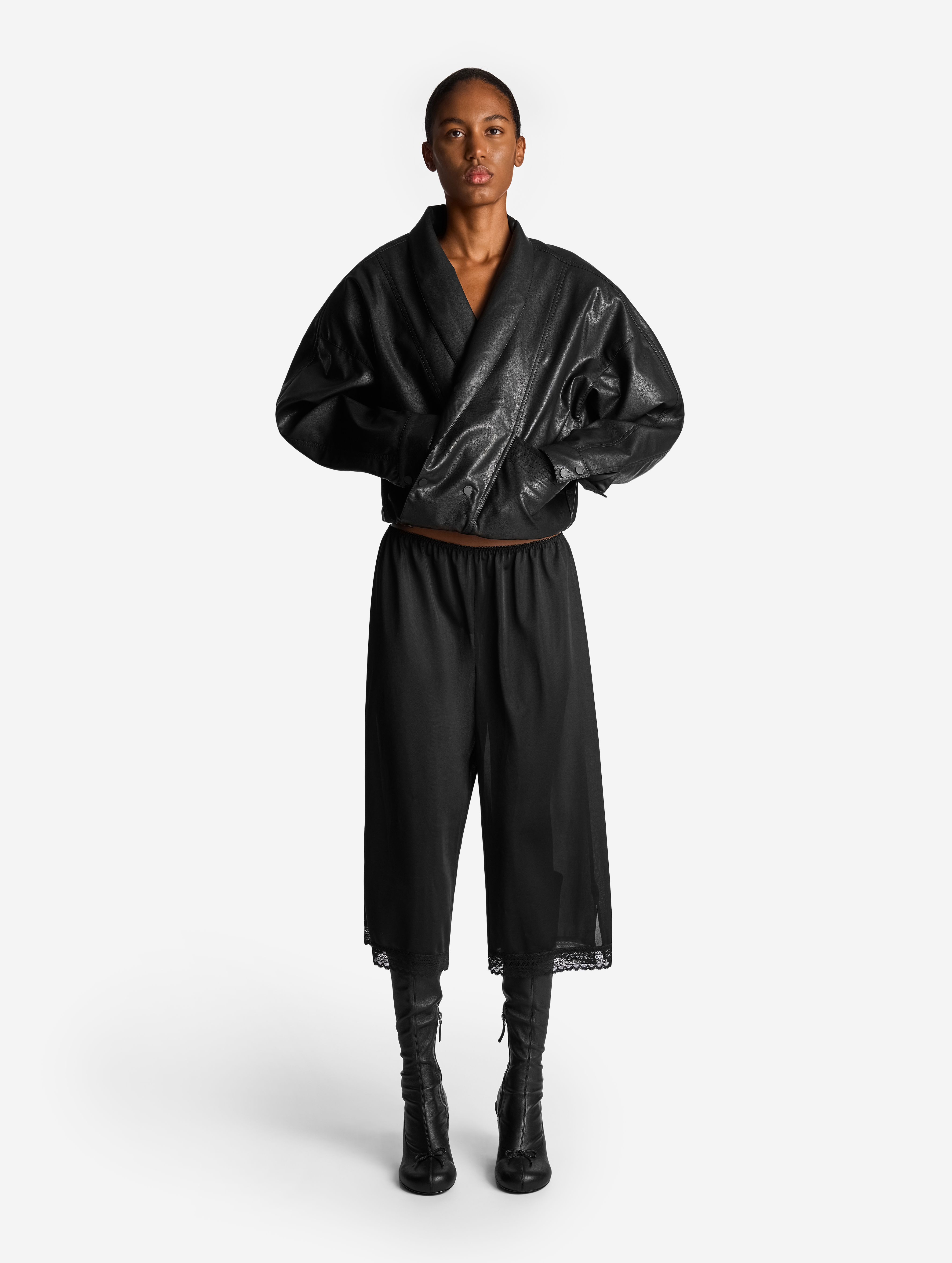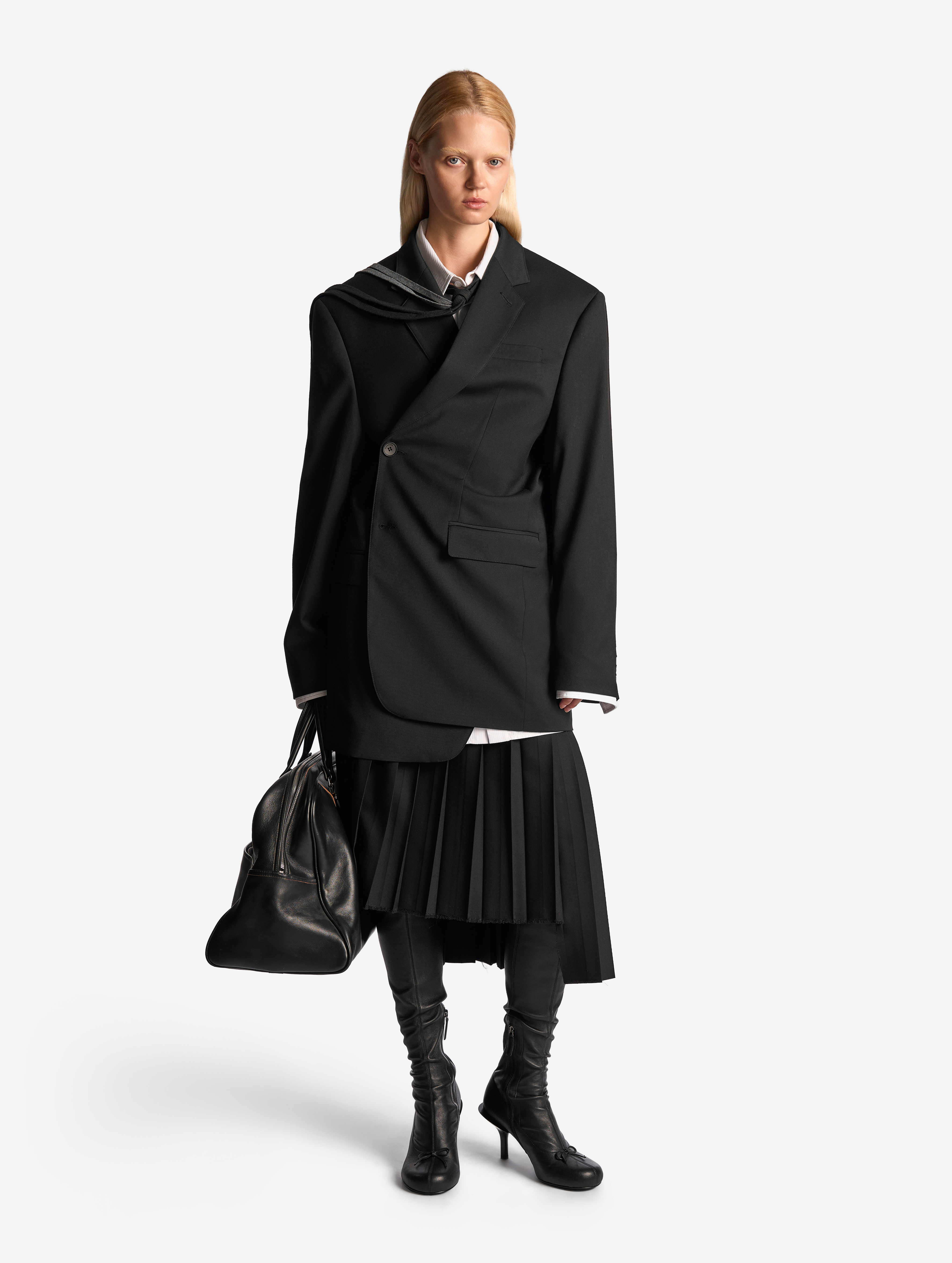 Один из любимых стайлинг-трюков Ushatava — туфли, надетые поверх чулок в тон. К десятилетию модного Дома мы решили увековечить его и создали сапоги, имитирующие этот эффект. Мягкая кожа стрейч-шевро облегает ногу и подчеркивает искусственно созданный контур туфель с круглым носом. Их украшает бантик — игривый элемент бельевой фурнитуры, который неожиданно появляется в дизайне обуви.