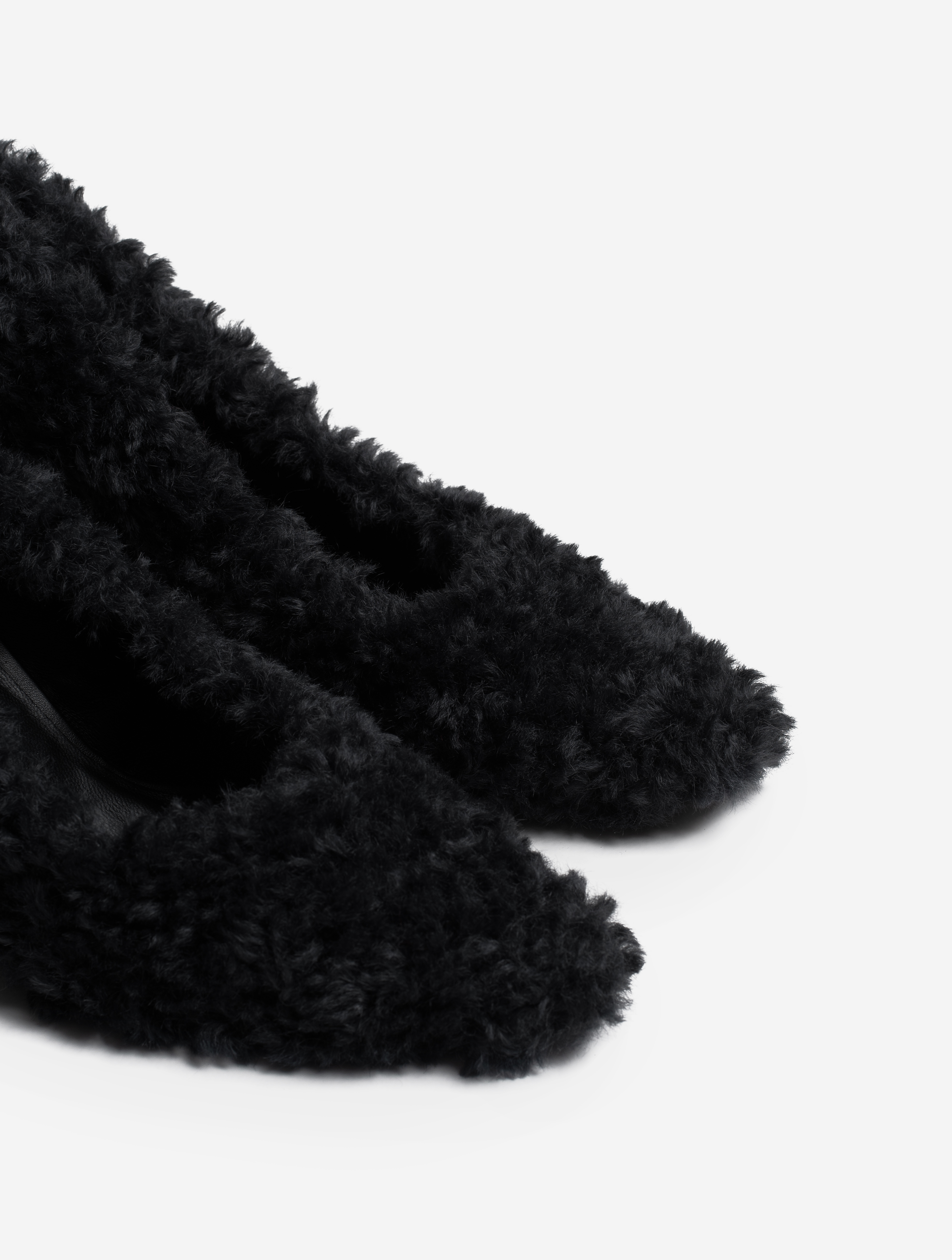 Туфли-лодочки выполнены из натуральной кожи, поверхность которой прошита коротким искусственным мехом. Каблук высотой 8 см — золотой стандарт Ushatava. Он обеспечивает твердую опору и комфортный подъем стопы. Резиновая подошва делает пару устойчивой к износу и внешним воздействиям.