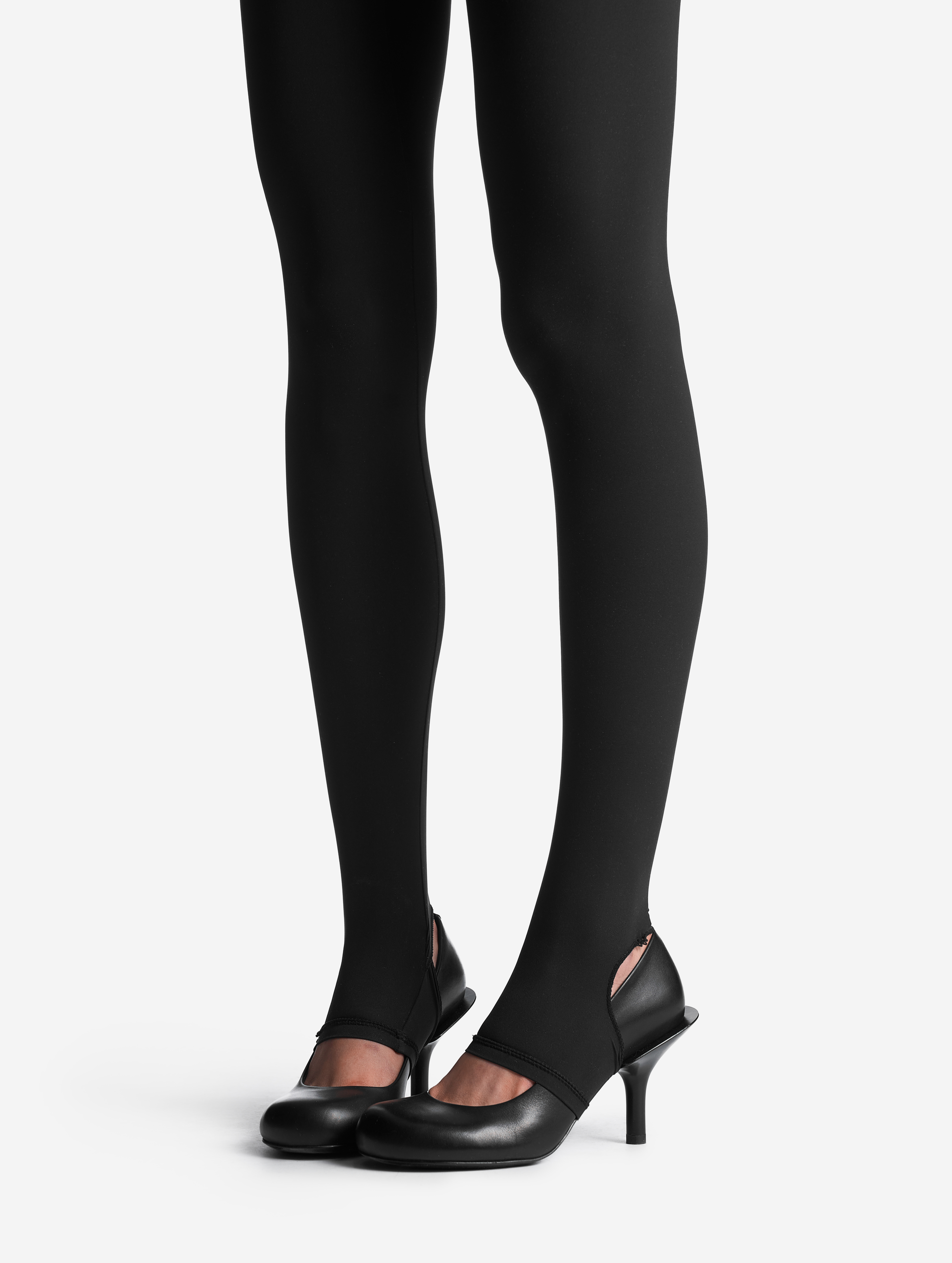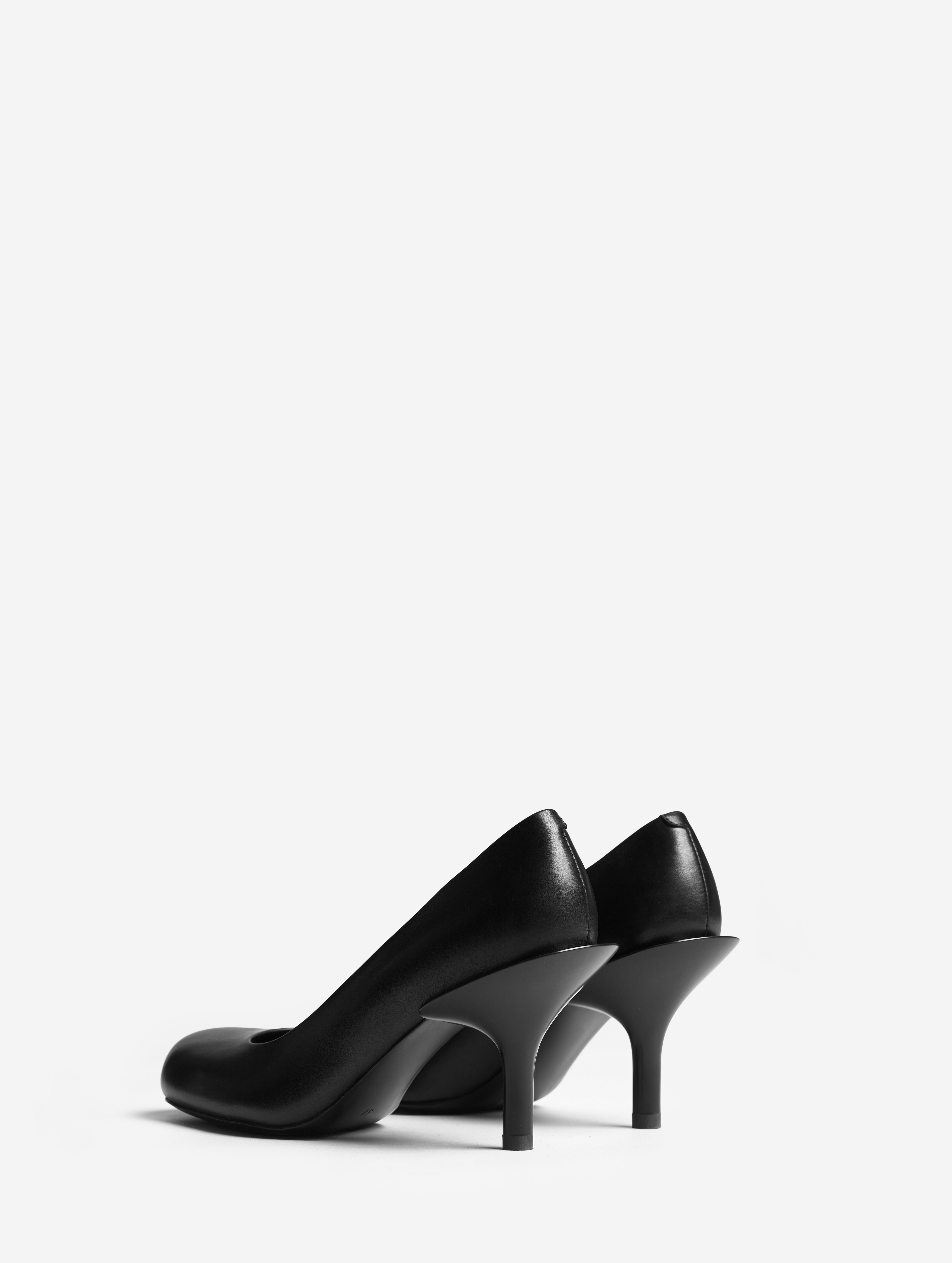Они выполнены из натуральной кожи, которую отличает нежная поверхность. Подкладка также изготовлена из натуральной кожи — дышащей и гипоаллергенной. Каблук модели немного выше золотого стандарта Ushatava и составляет 8,7 см. Он отвечает идее деконструкции: основа шпильки вынесена за пределы пяточной зоны и формирует выступающий кант. Кажется, будто его приклеили в спешке. Эргономичная колодка обеспечивает твердую опору и комфортный подъем стопы.