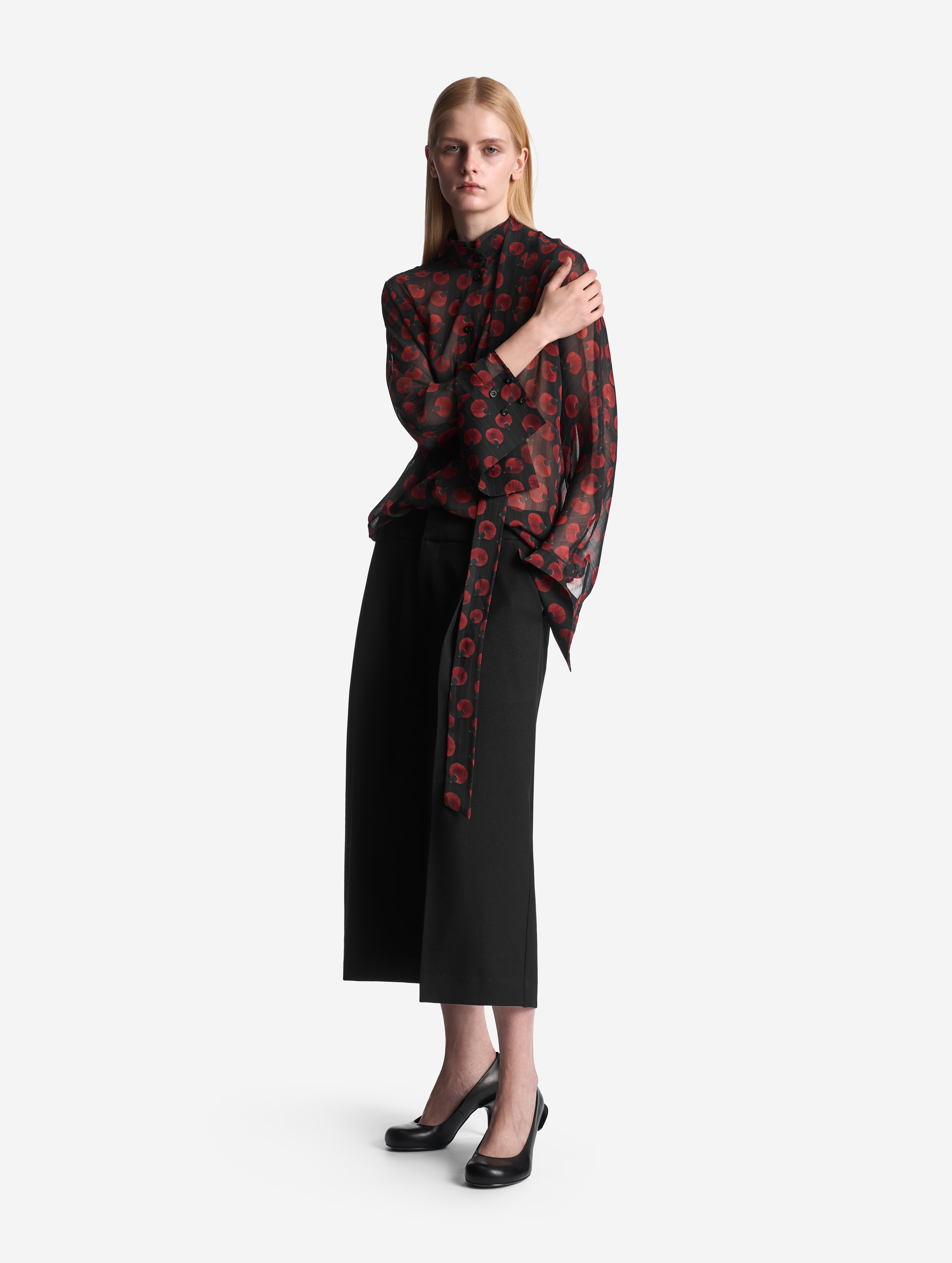 Дизайн-команда Ushatava часто дает свои собственные имена предметам, над которыми работает, и все они сливаются в единый язык, понятный только нашим дизайнерам. В Garderobe SS26 мы решили сохранить одно из этих необъяснимых названий — так появились туфли Candy Pump.