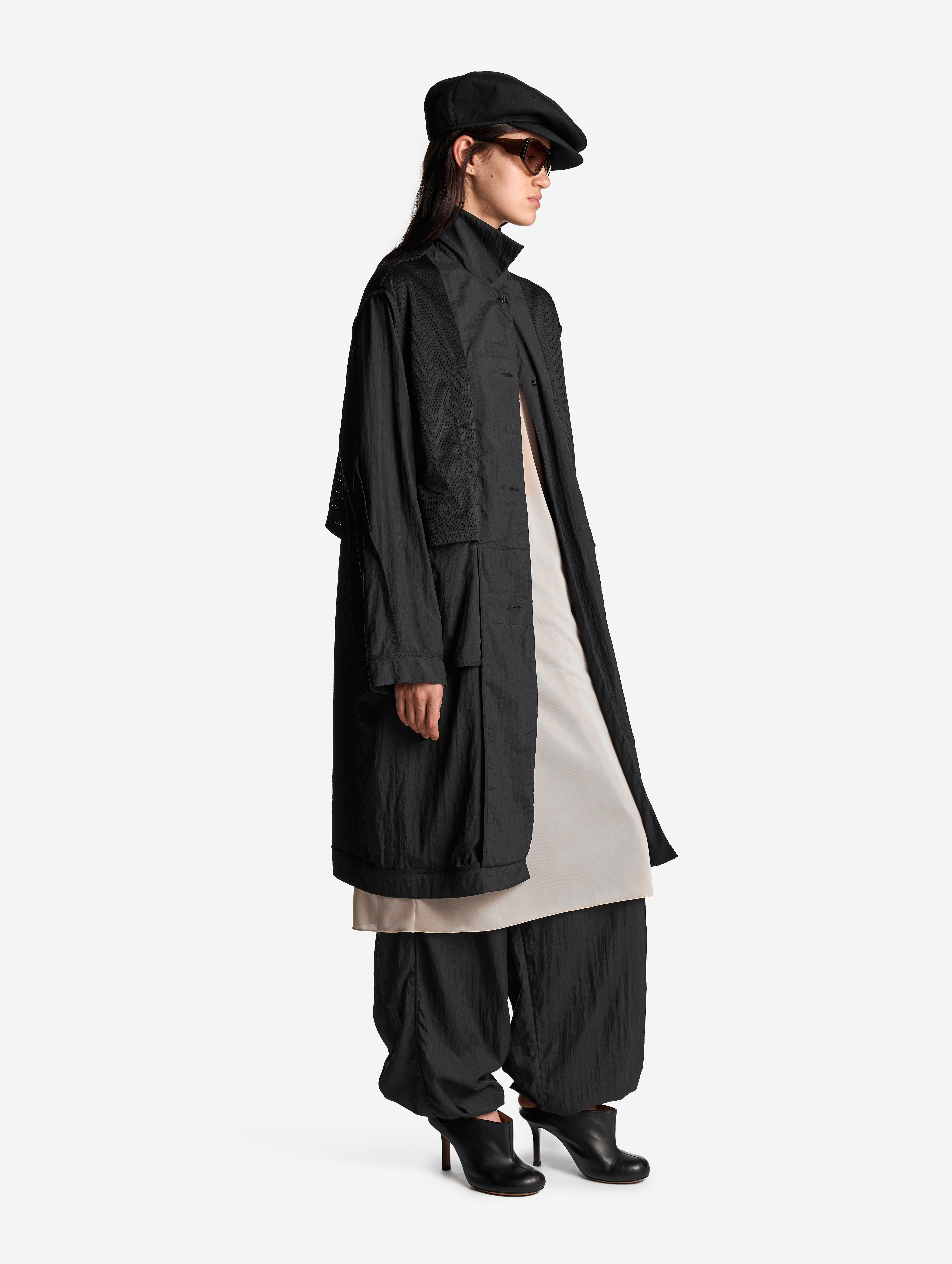 За последние несколько лет в Ushatava сложилась традиция: самые запоминающиеся силуэты и предметы гардероба мы протягиваем из одной линии в другую, тем самым устанавливая связь между ними. Кепка-аэродром впервые появилась в коллекции I am that I am подиумной линии Research FW24/25, где Нино Шаматава, креативный директор Ushatava, много размышляла на тему корней, семейных и национальных. Благодаря этим размышлениям в коллекции появилась серия грузинских вещей — кепка-аэродром стала одной из них.