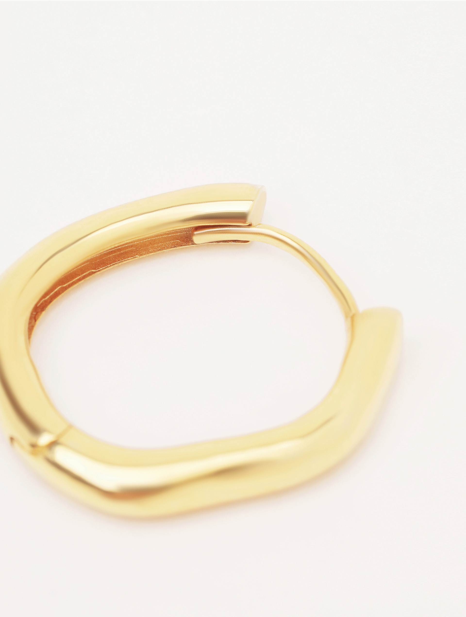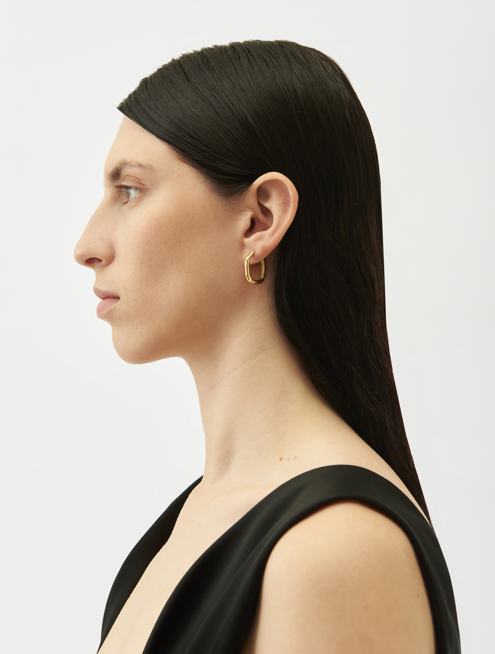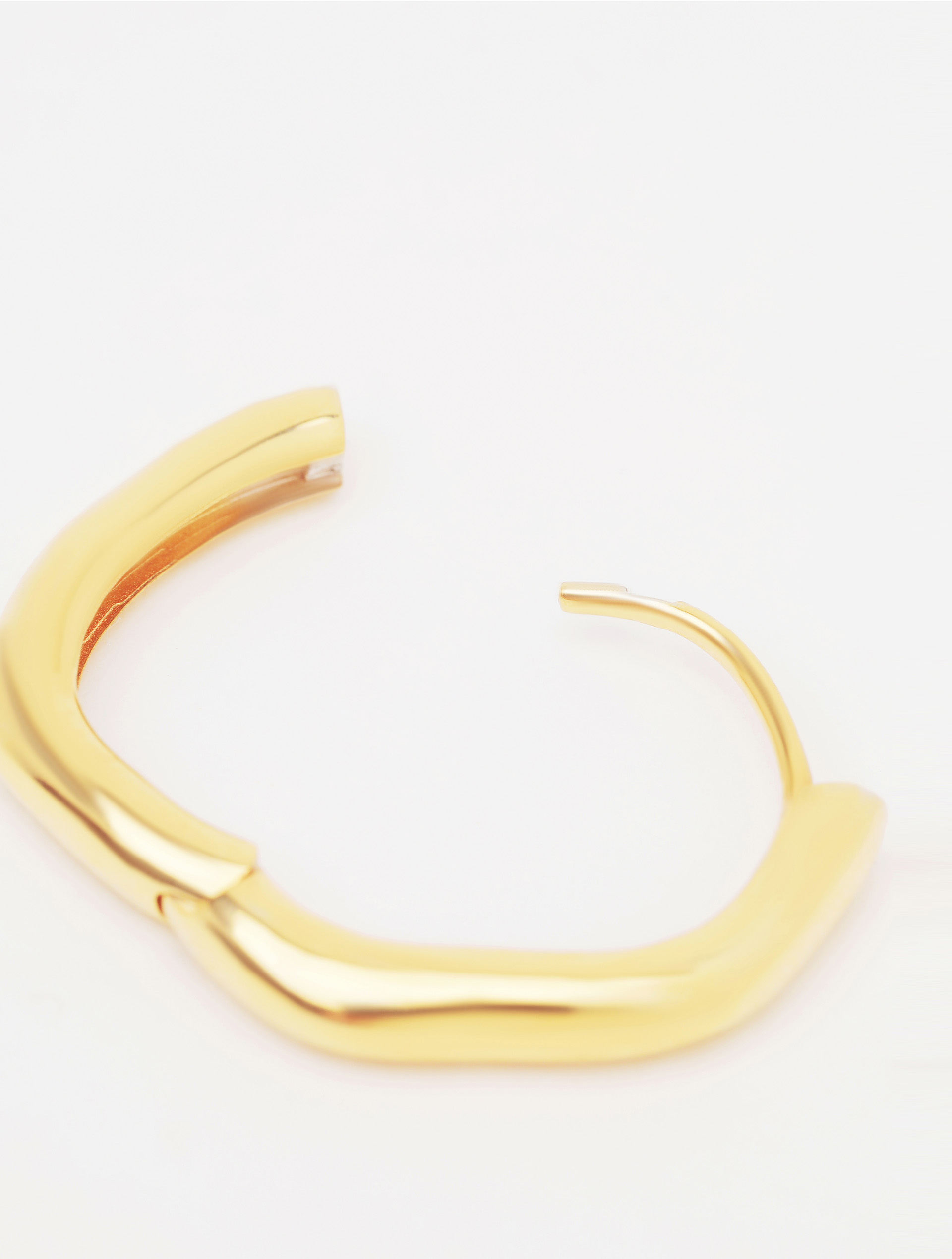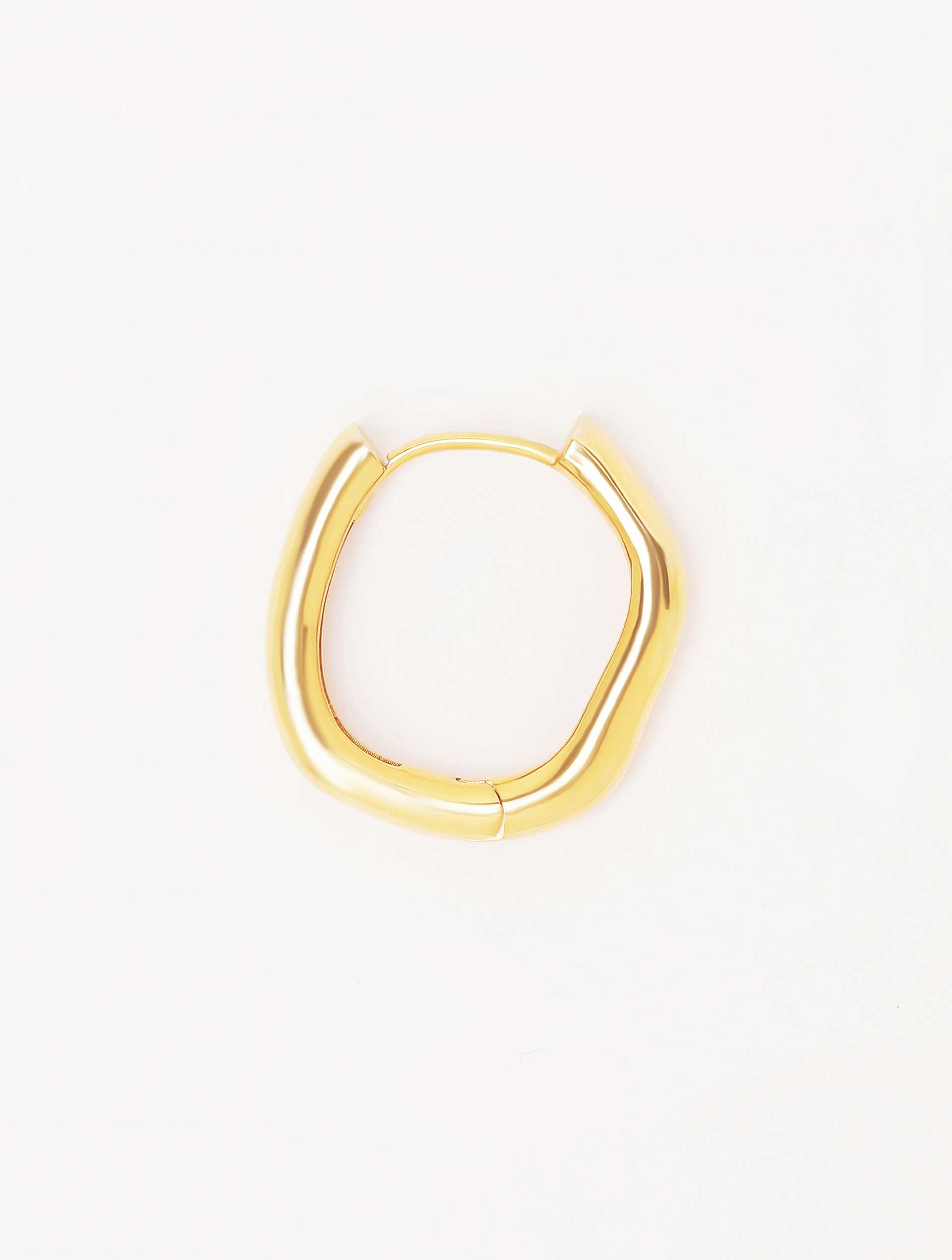 Сережка-хуп — простое, миниатюрное изделие, появившееся как альтернатива крупным моносерьгам. Не идет в комплекте, продается как моносерьга. Хуп отлит из серебра, покрыт позолотой, не пустотелый. Имеет погнутую поверхность как продолжение центральной темы несовершенных форм. Базовое украшение USHATÁVA, универсальное в любых комбинациях: его можно усложнить, повесив на него колечко, или вставить хуп в один из проколов, если их несколько.